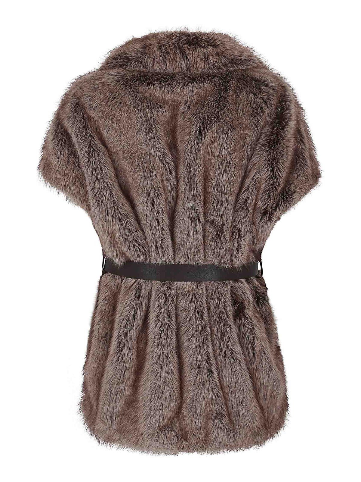 Weste aus Kunstpelz mit Reverskragen, ärmellos, mit einem farblich abgestimmten Gürtel.