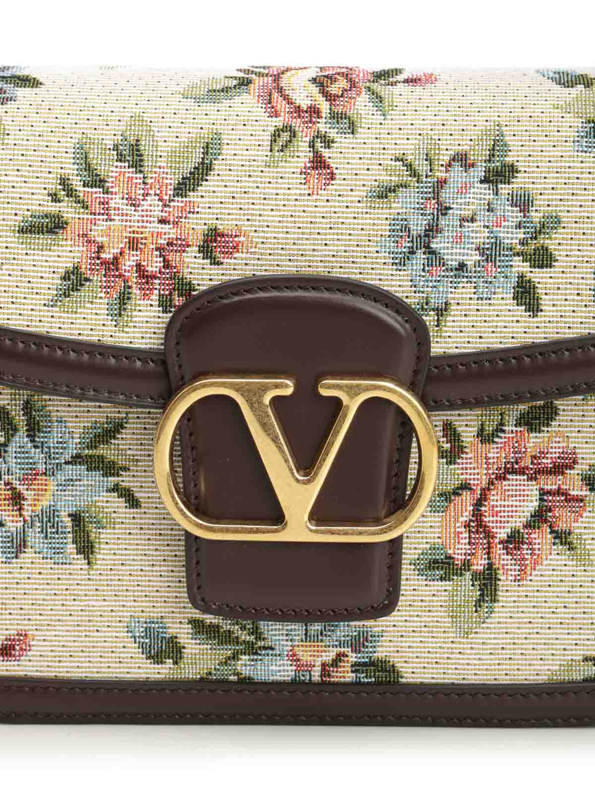 Valentino garavani to shoulder bag in jacquard with papier floral motif trim and vlogo signature the bag can be carried over the shoulder or cross, body thanks to the adjustable shoulder strap antique, finish hardware magnetic with logo