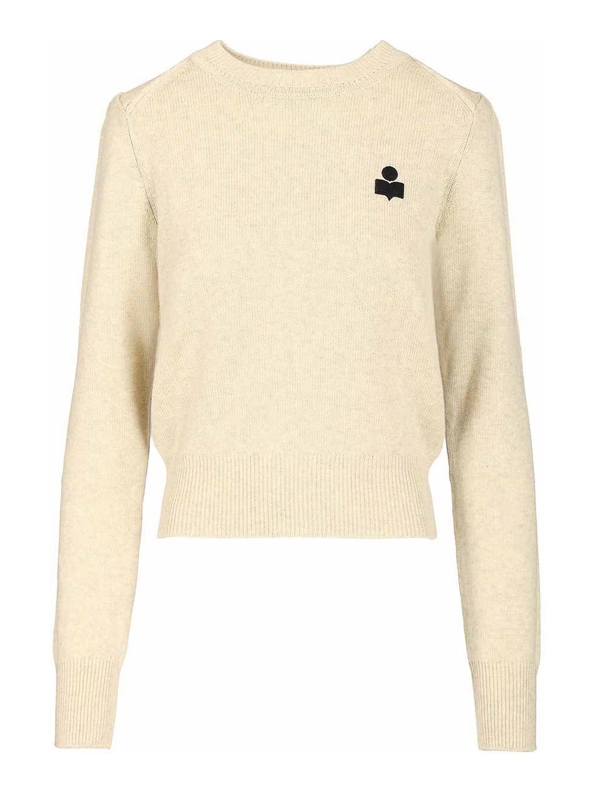 abelle sweater in wool and cotton by marant etoile, with im logo embroidered on the chest, long sleeves and ribbed finishes