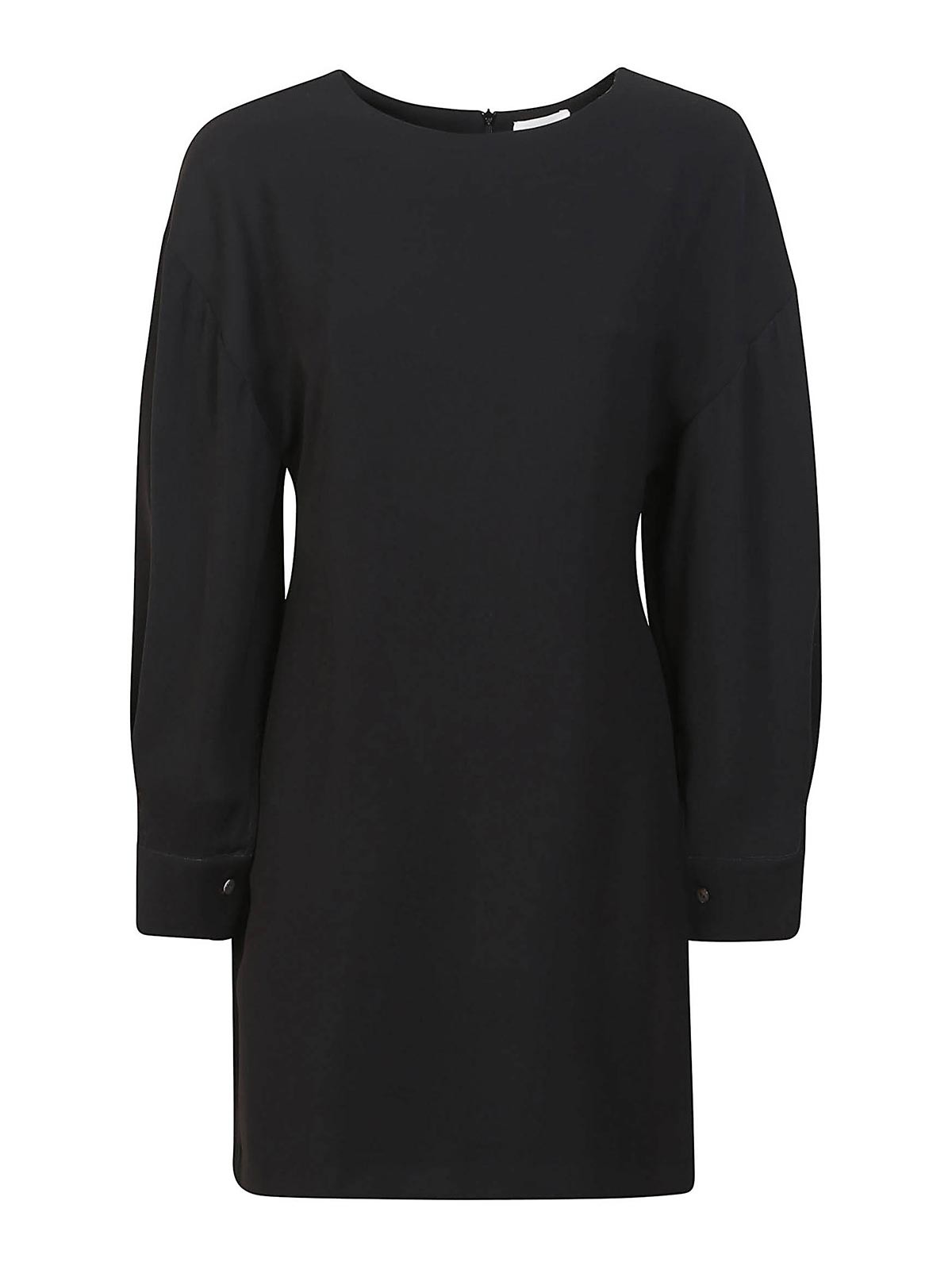 Cad dress, black colour, crew neck, buttoned cuffs, zip closure on the back.
