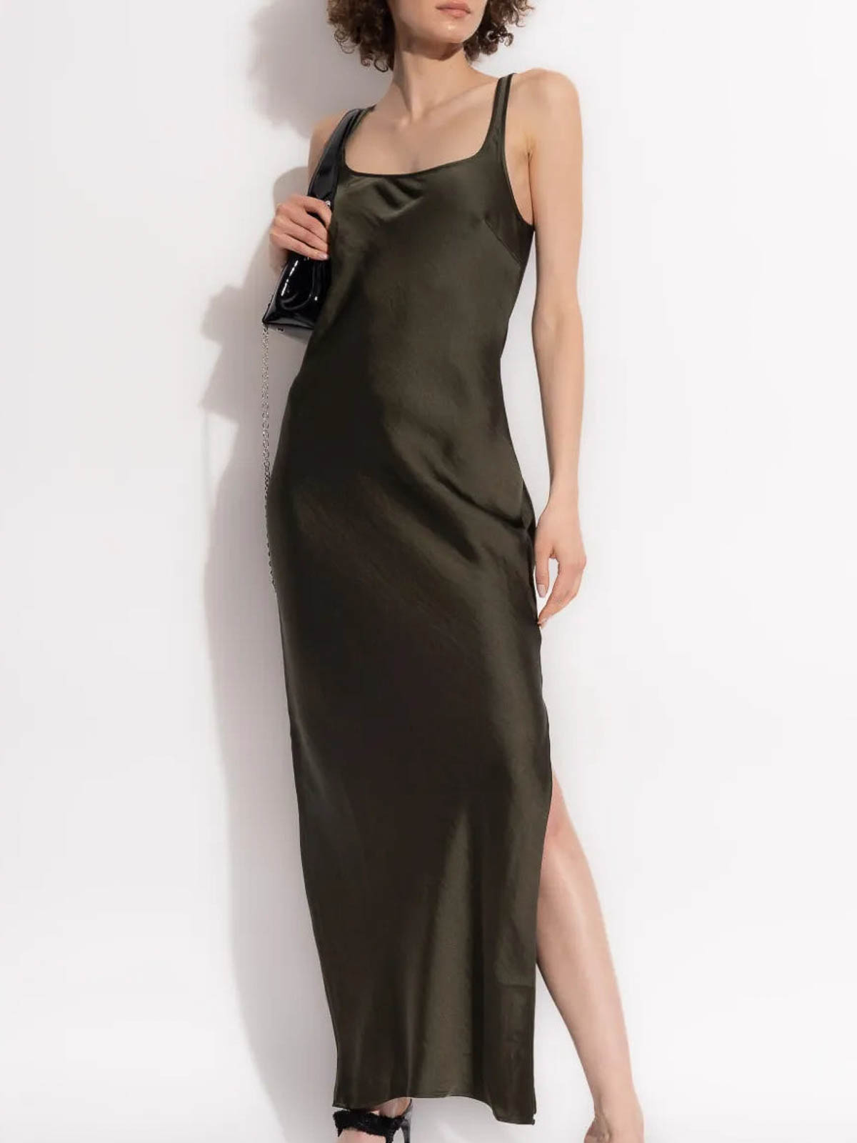 Sunna dress; 100%recycled polyester; sleeveless midi dress, square neckline, side slit