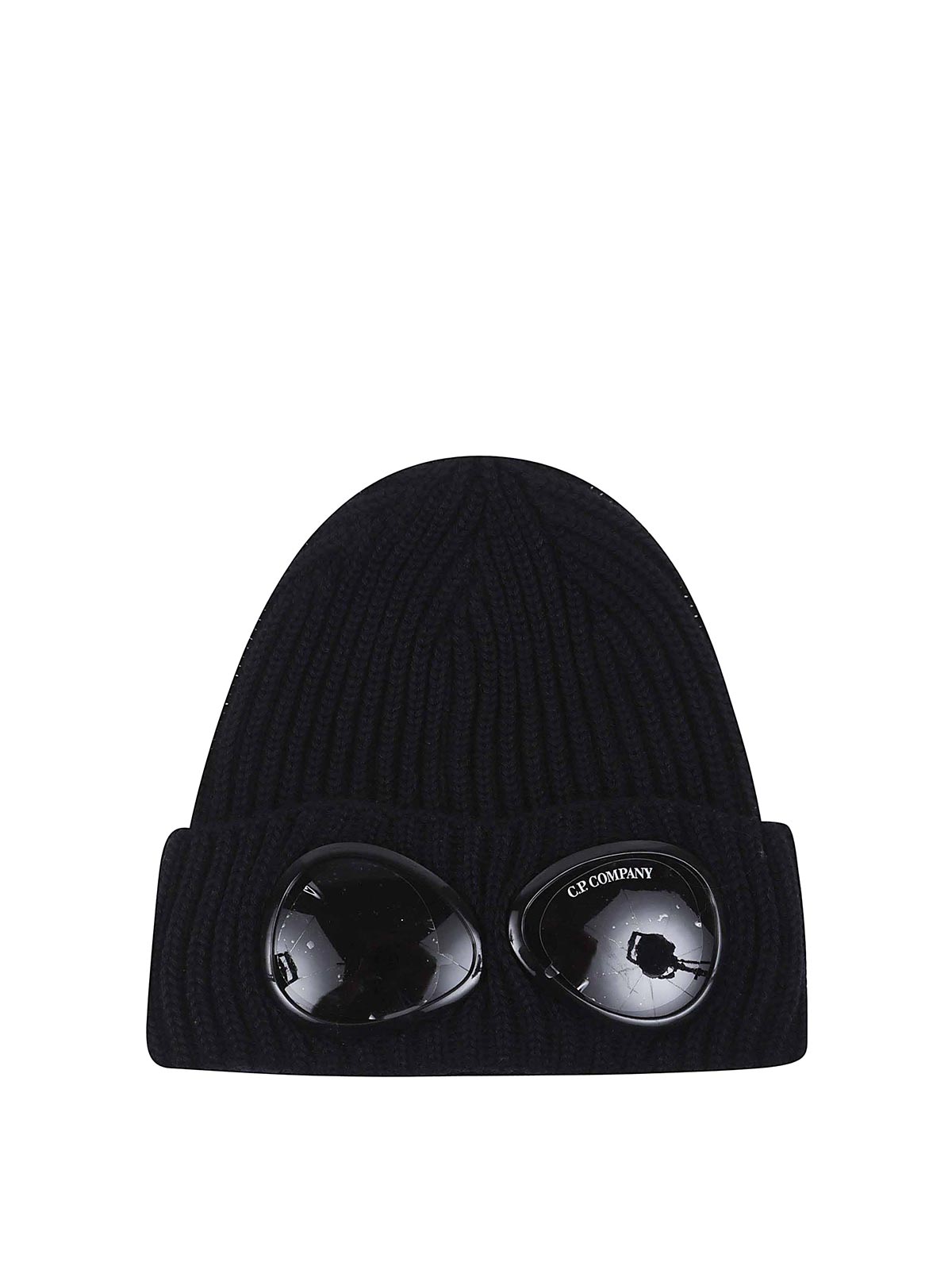Ribbed-knit hat in extra-fine merino wool by CP Company, featuring the iconic c.p. Company goggle lenses.