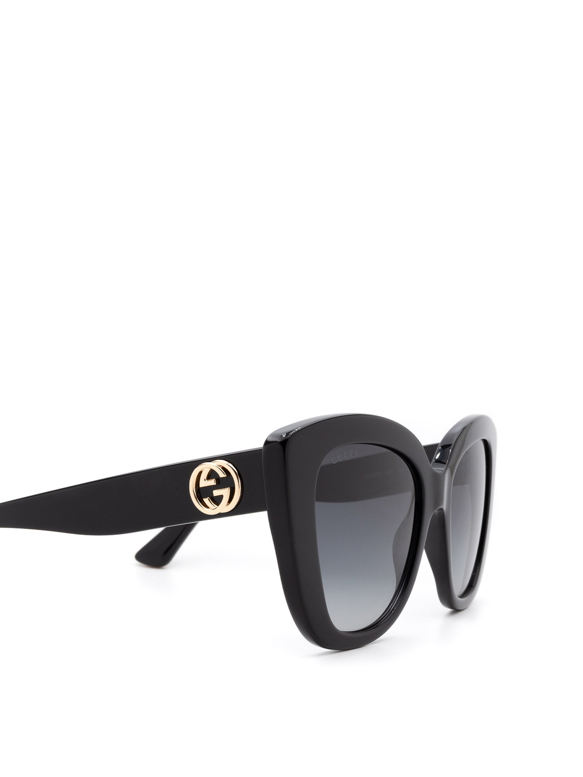 Acetate over cat eye sunglasses featuring gold-tone metal GG monogram at temples.