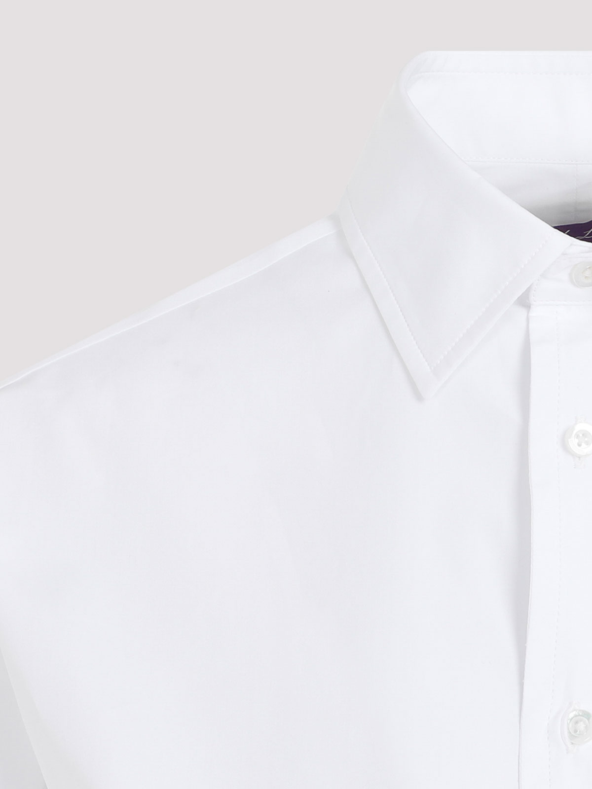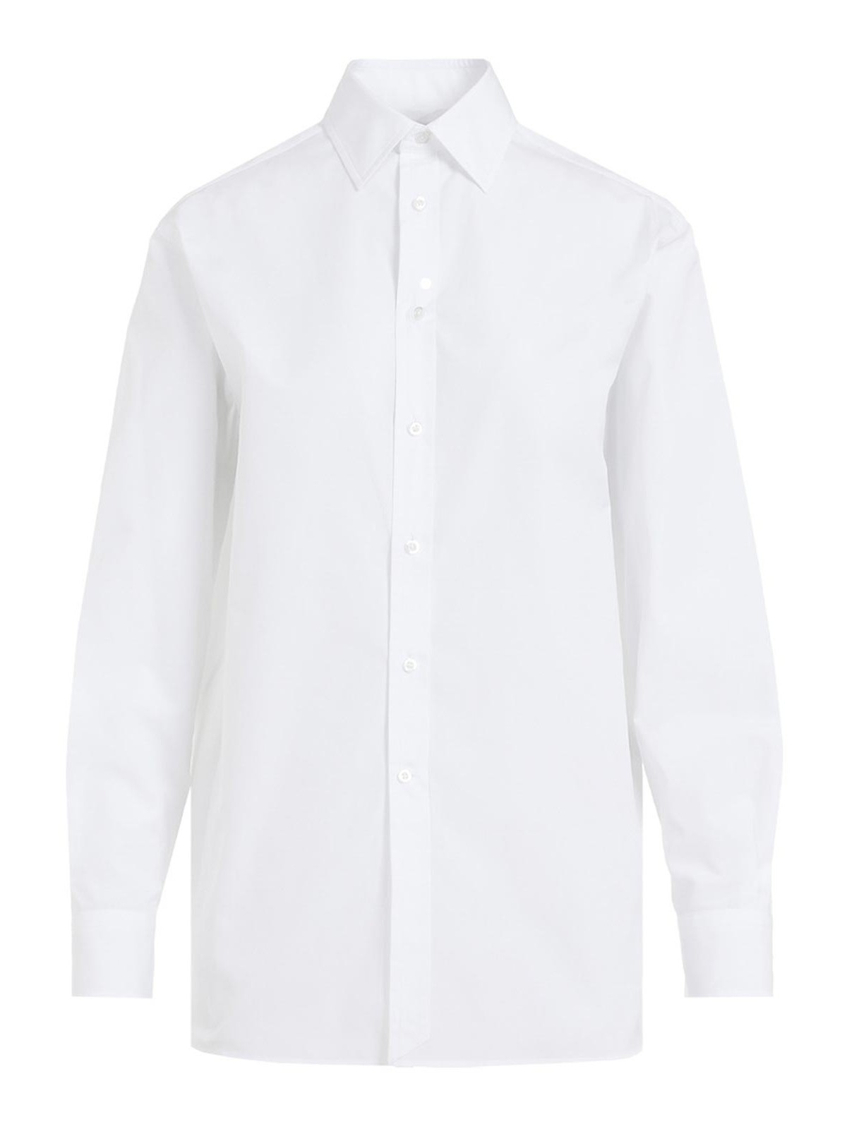 Ralph lauren collection adrien ls white cotton shirt. white cotton poplin, pointed collar, mother of pearl button closure on the front, long sleeves, buttoned cuffs, back yoke, rounded hem, relaxed fit.