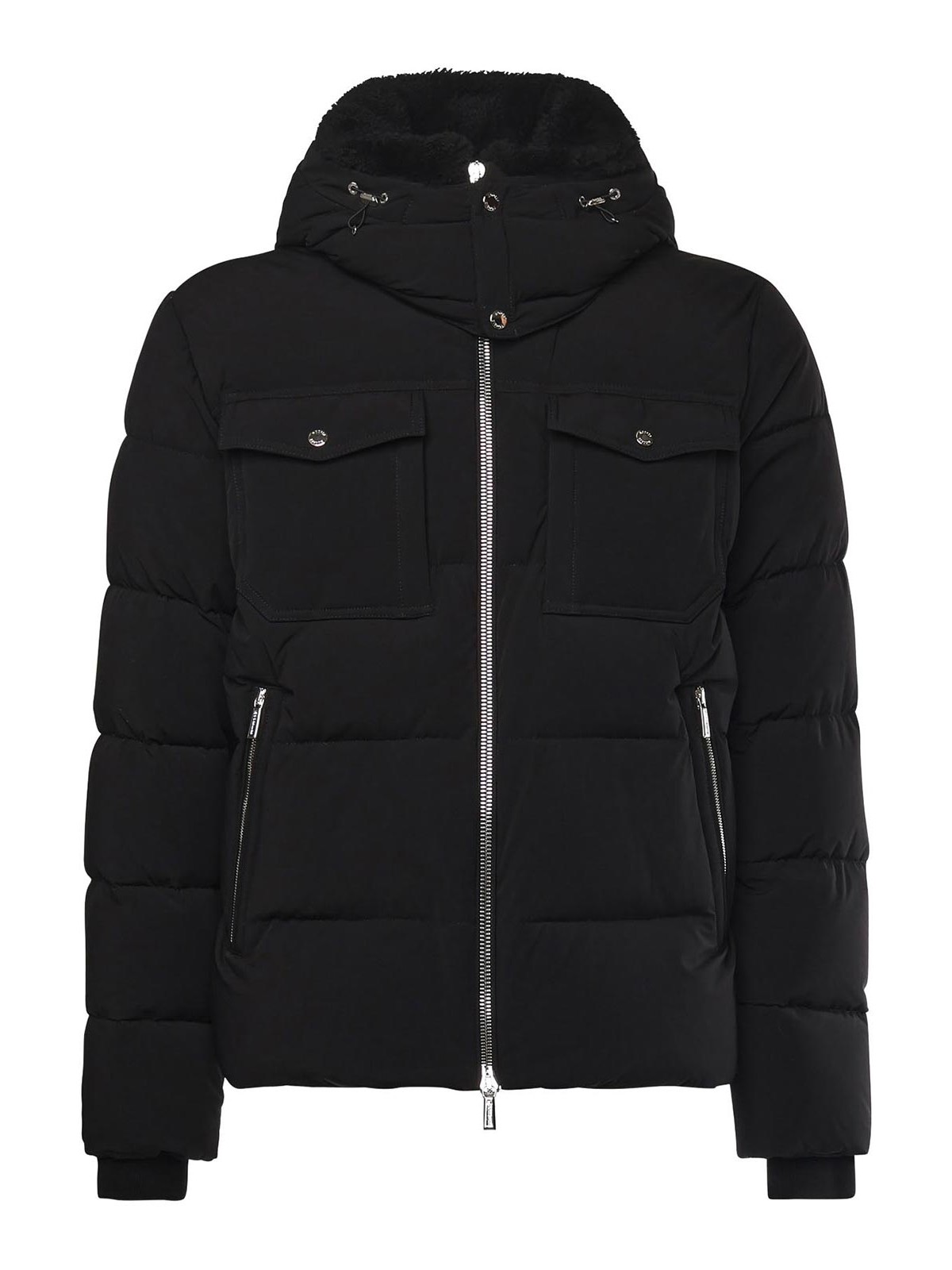 front zip closure, patch pockets, hooded, lined, size shown in photo is 48, color: black