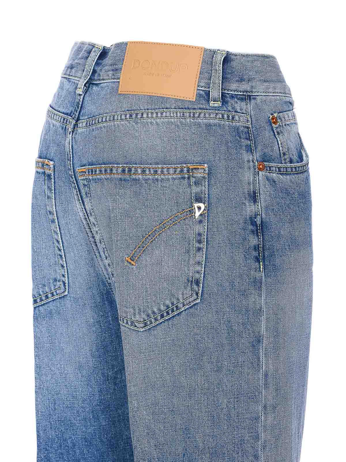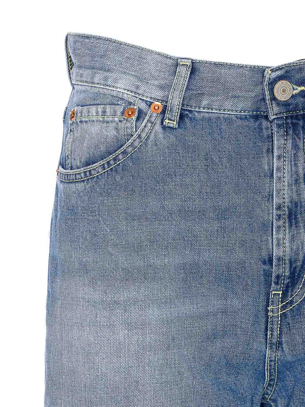Denim amber jeans with frontal zip and button pockets patch logo on the back