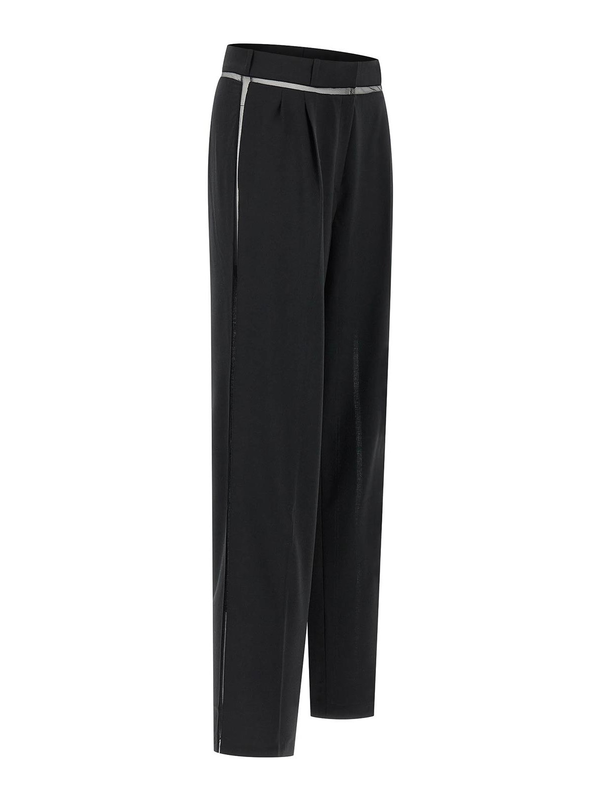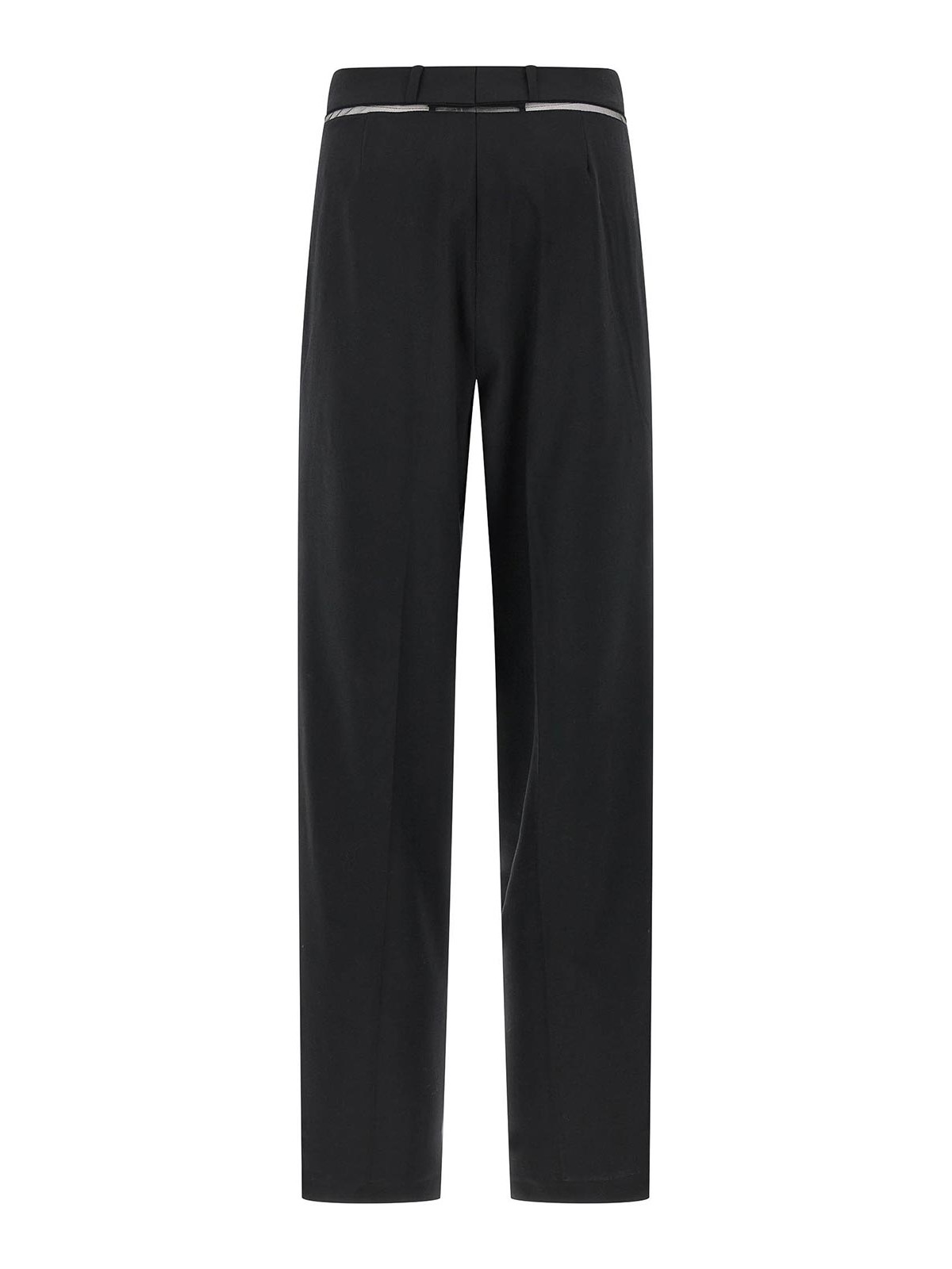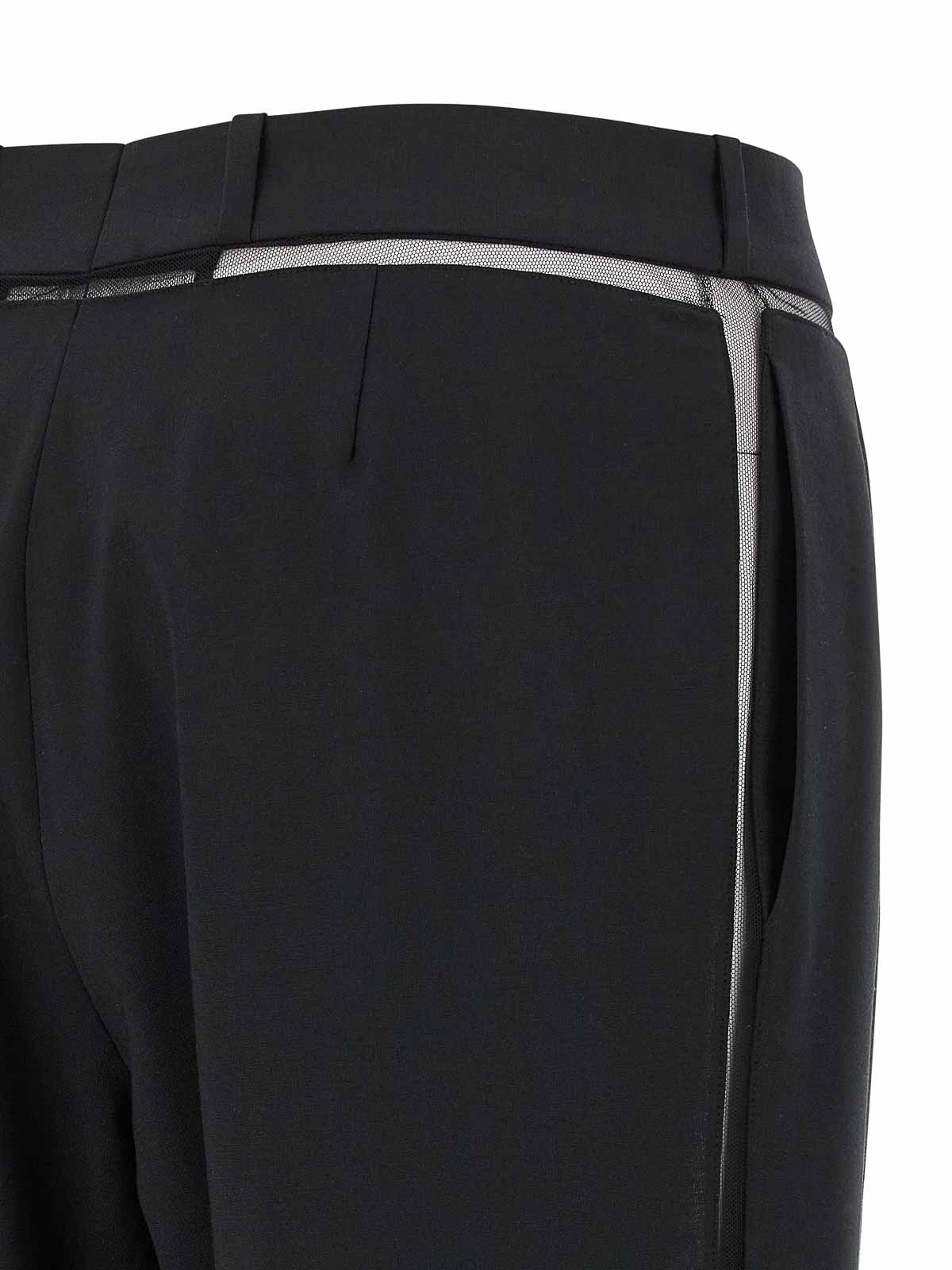 Anouk' virgin wool blend pants with semi-transparent tulle inserts, pince, stretched pleat, straight leg, zip, hook and front button closure, pockets.