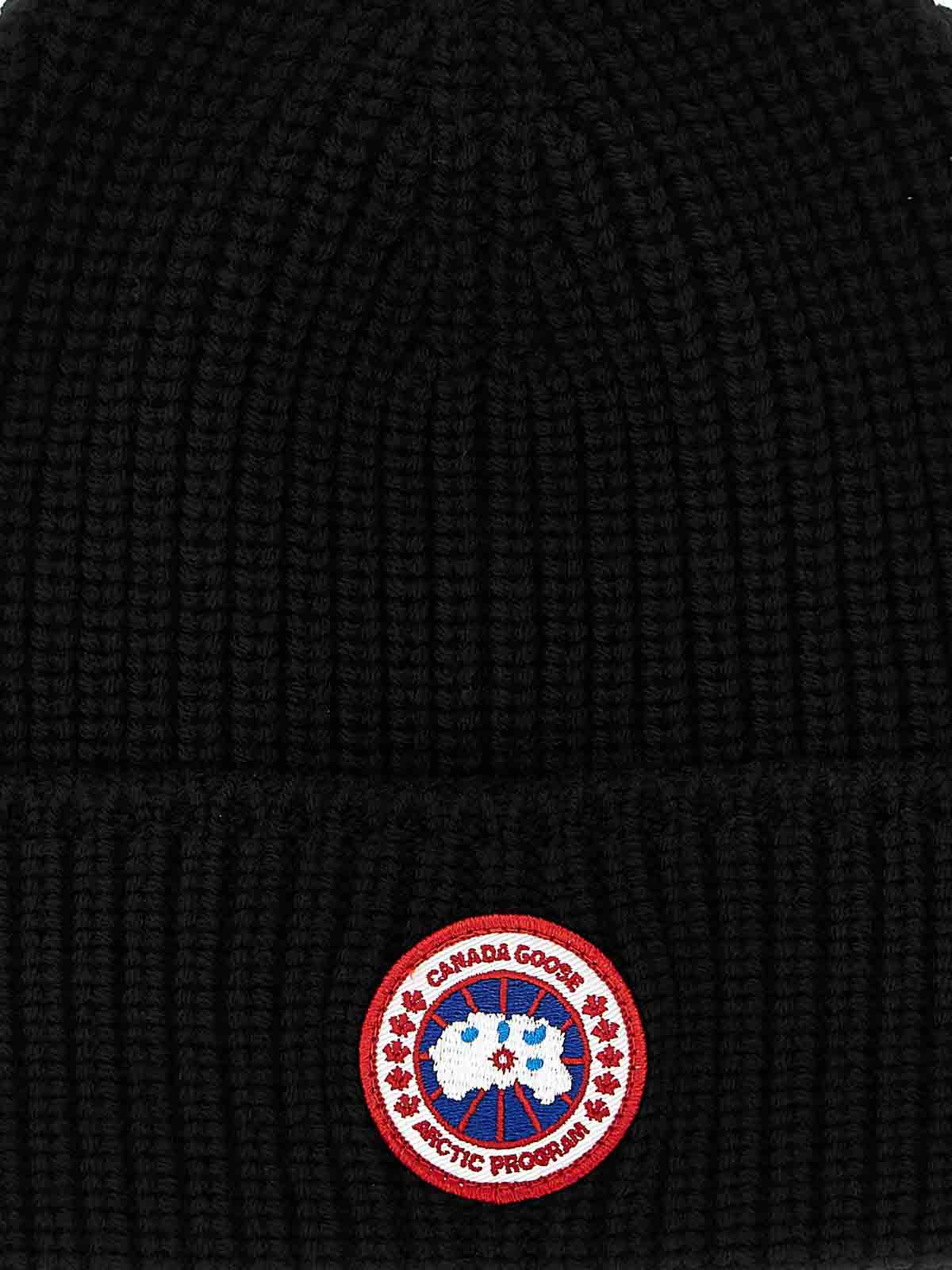 Arctic' middle-weight merino wool beanie with ribbed knit and turn-up with front logo patch.