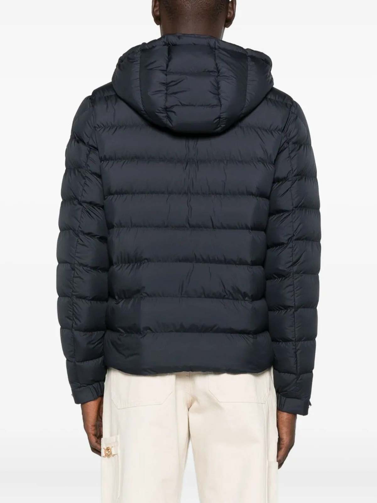 Dark blue, quilted design, zip front fastening, long sleeves, buttoned cuffs