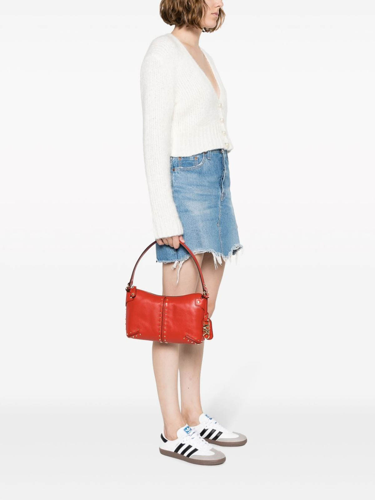 Large astor shoulder bag poppy red smooth grain logo tag logo patch gold-tone stud embellishment gold-tone hardware top zip single shoulder strap zip-fastening pocket and logo-print