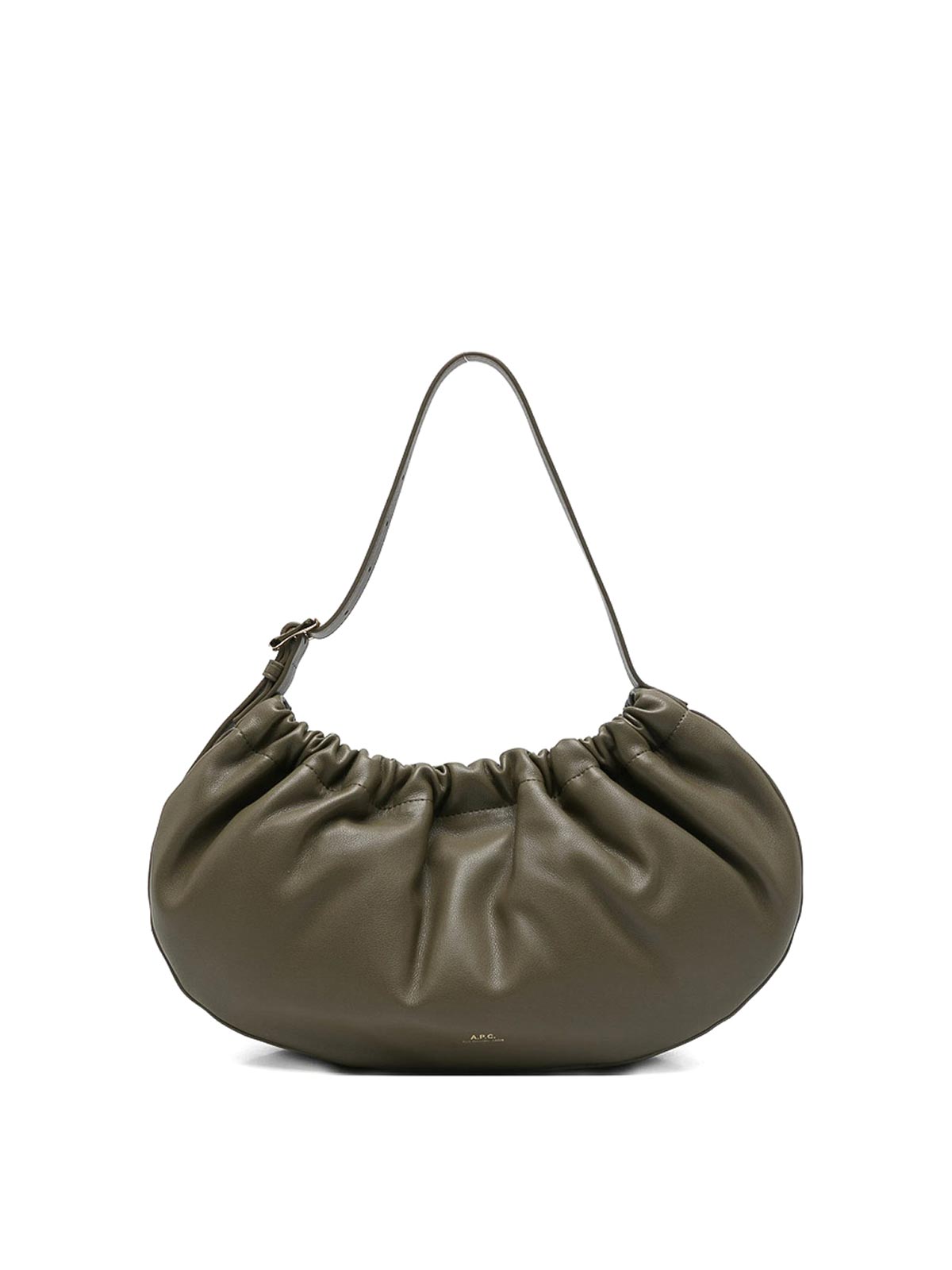 Green gathered detail top handle adjustable strap logo detail