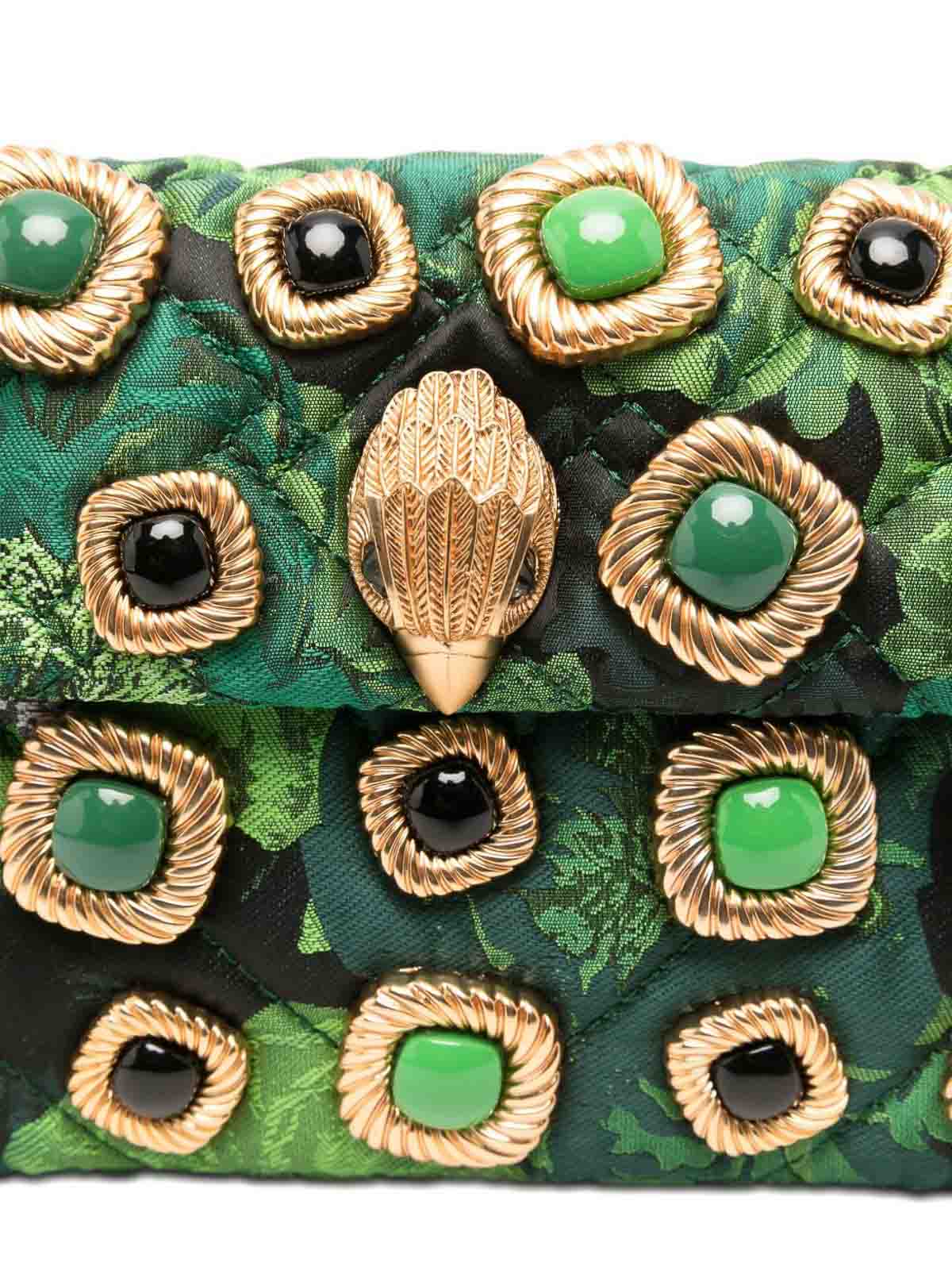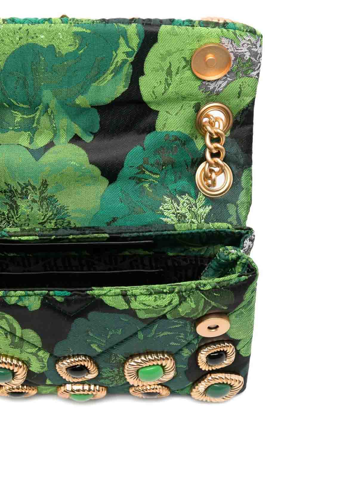 Green floral pattern quilted finish, tone hardware chain, link shoulder strap eagle head embellishment