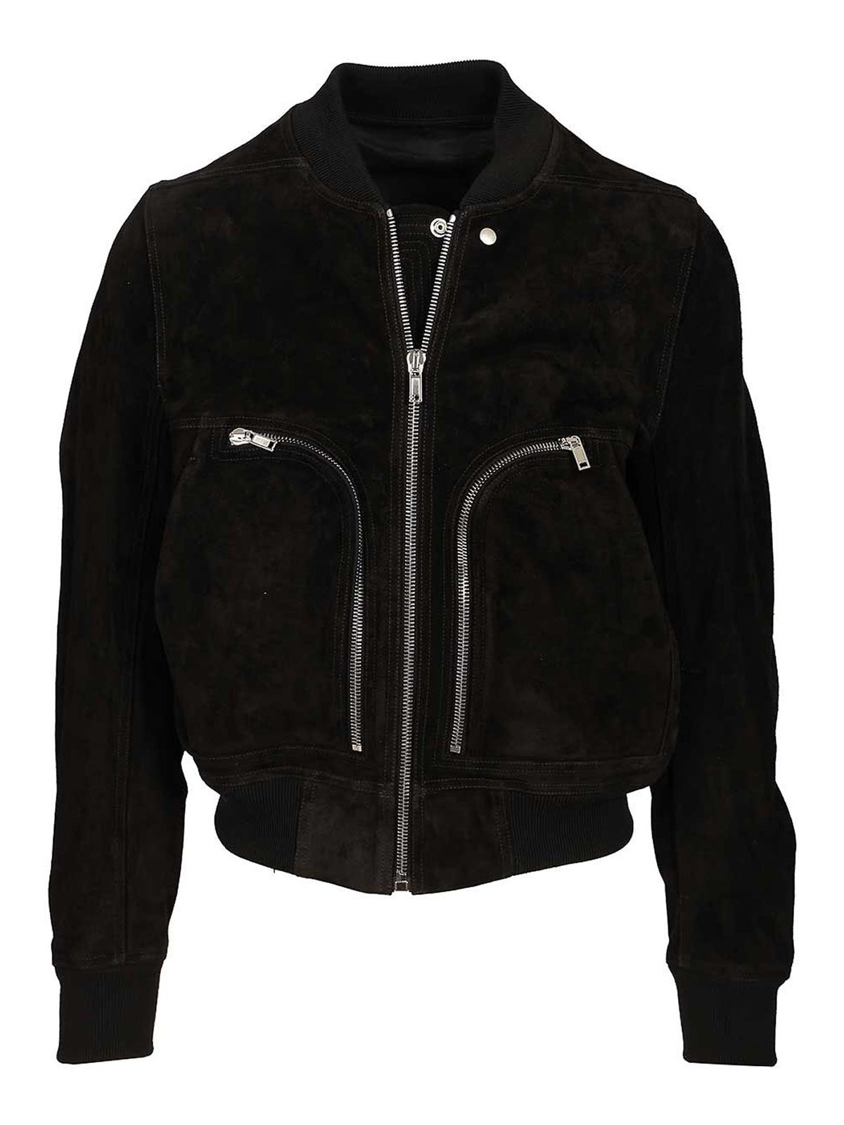 Leather jacket with zip welt and zip pockets knitted cuffs and hem