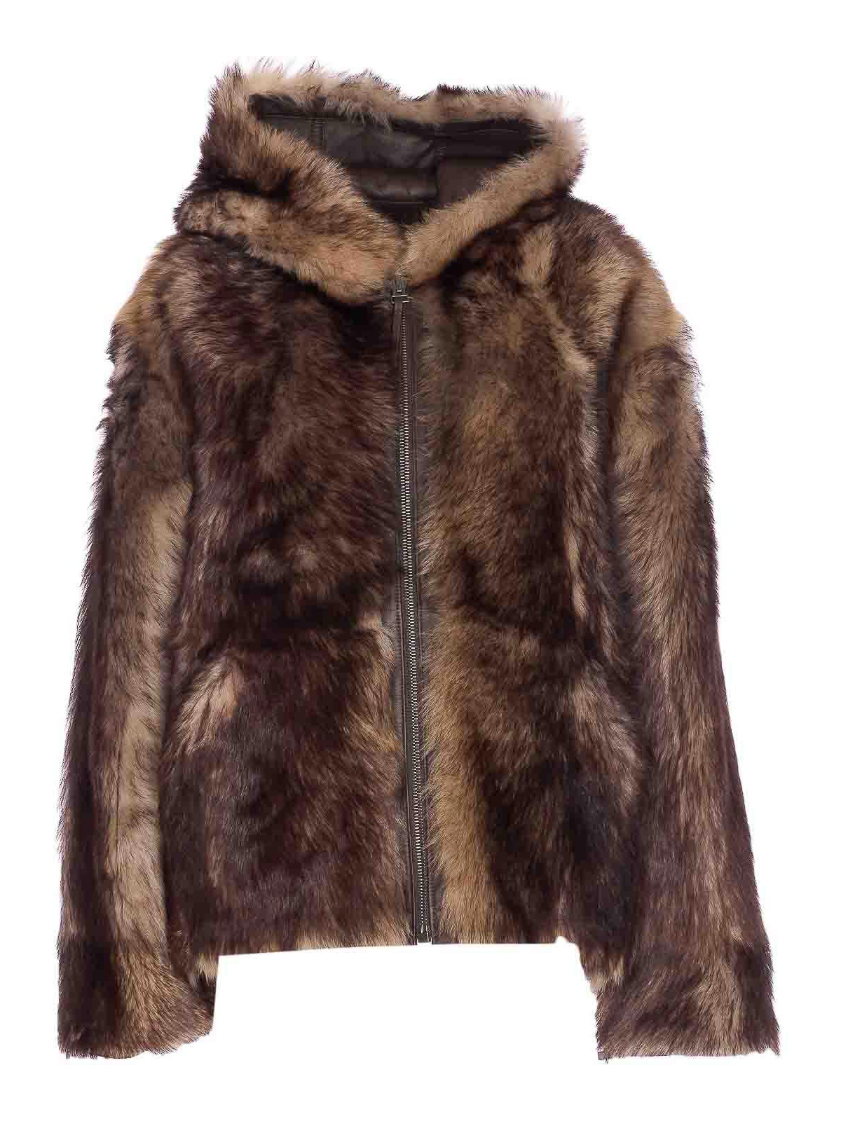 YVES SALOMON: Fur & Shearling Coats - Beige And Brown Reversible Jacket