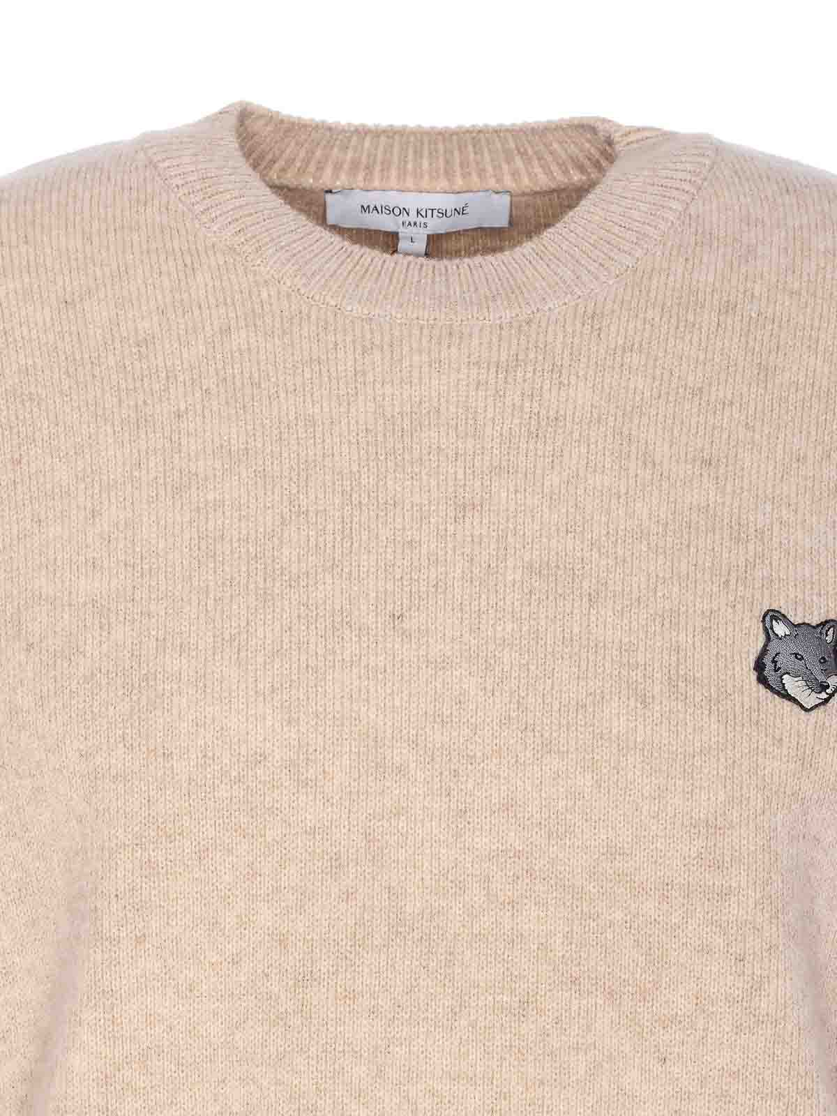 Maison kitsune' beige fox head milano sweater, crewneck, patch logo, long sleeves