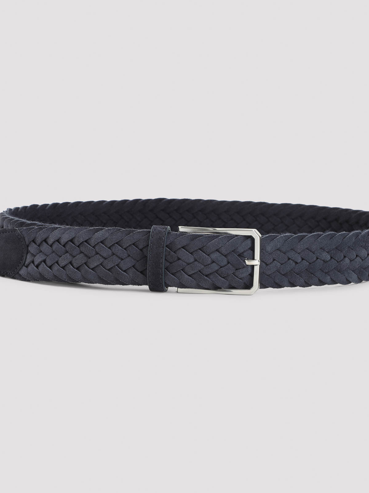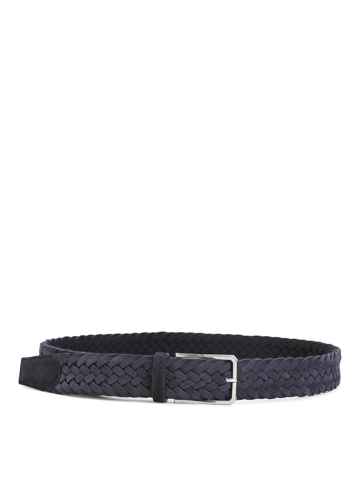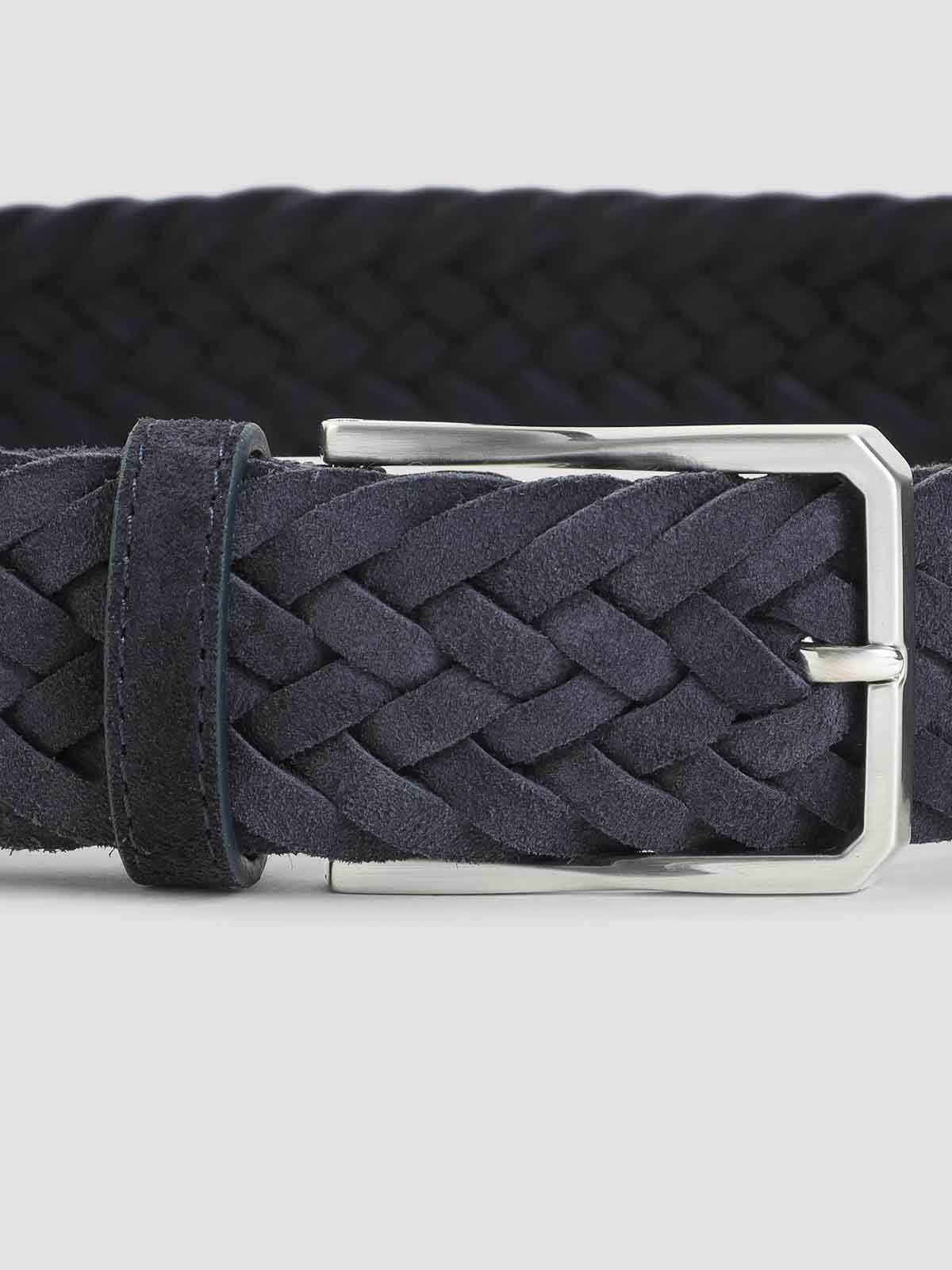Canali blue suede leather belt. pure blue suede leather belt, front silver-tone metallic buckle, adjustable design, belt loop, intreccio design.