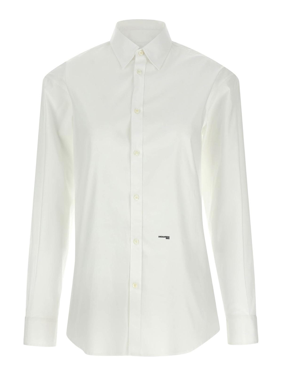 Bettter x dsquared2 cotton shirt with logo print and front button closure, long cuffed sleeves, wide back cut-out with drawstring.