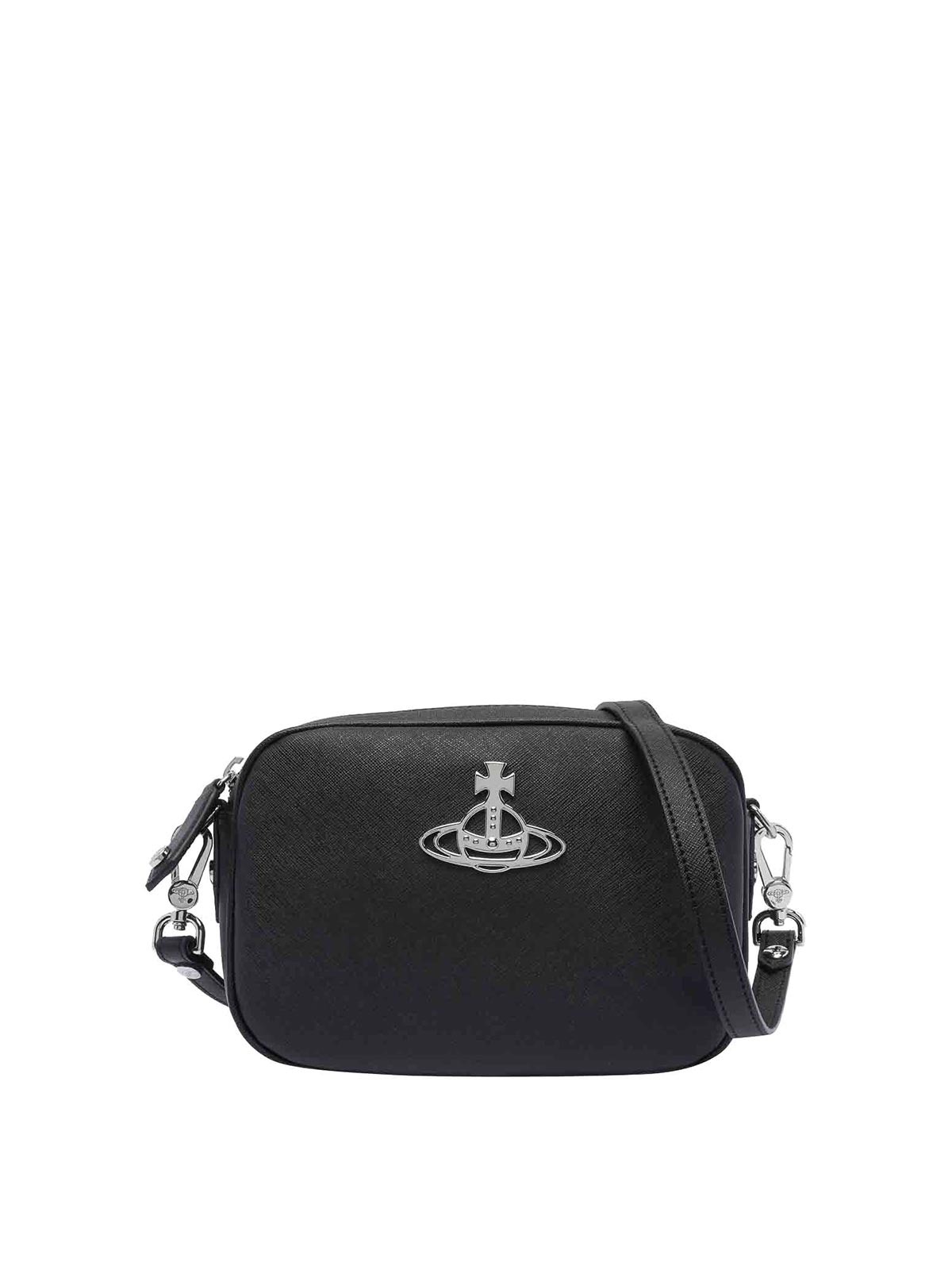 VIVIENNE WESTWOOD: cross body bags - Black And Silver Anna Camera Bag