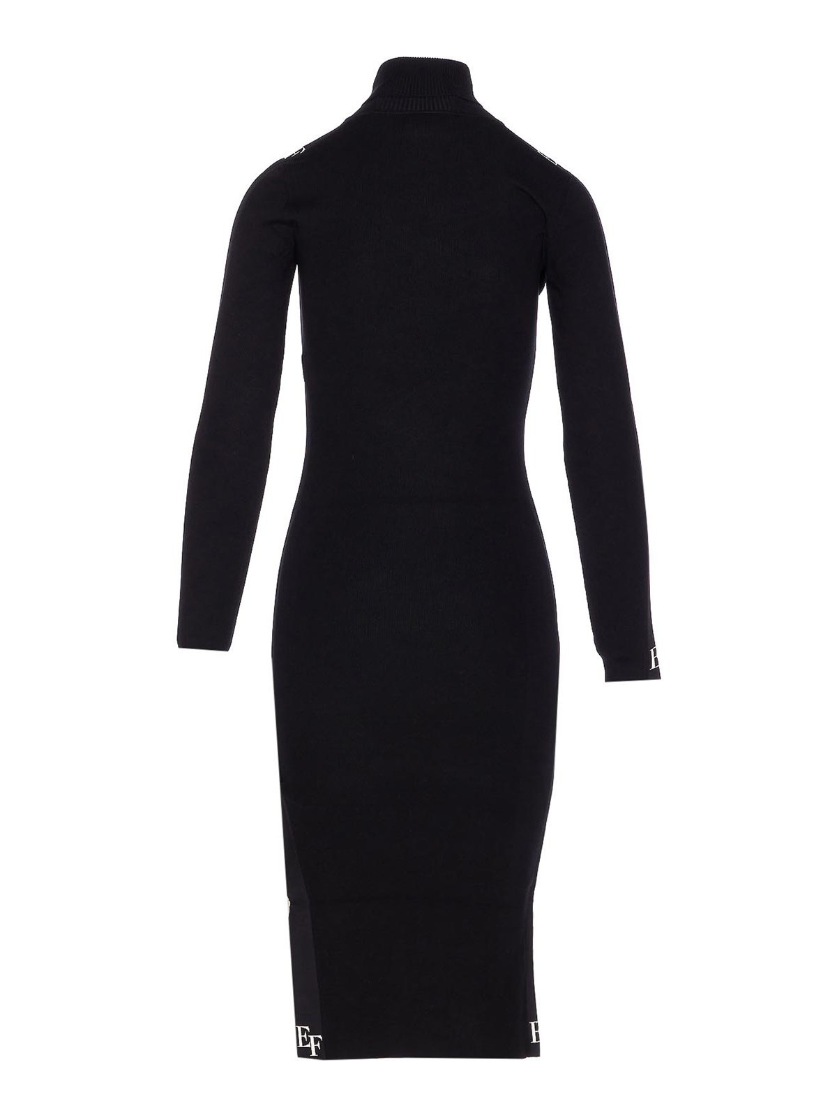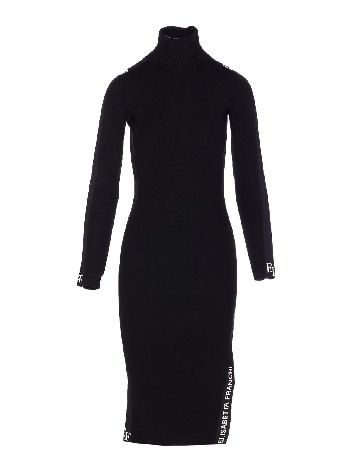 Elisabetta franchi black and white dress, high neck, long sleeves, logo, tight fit
