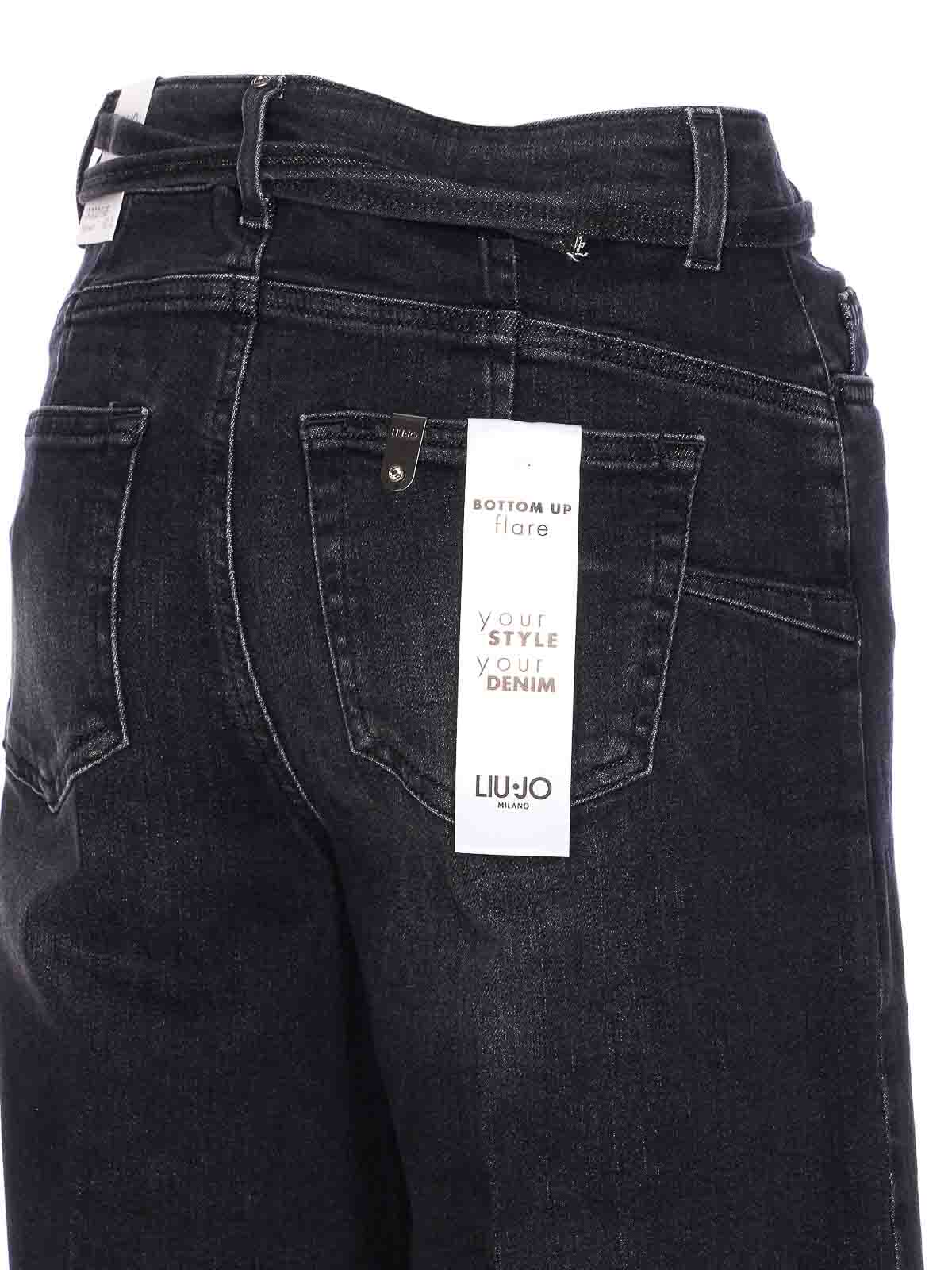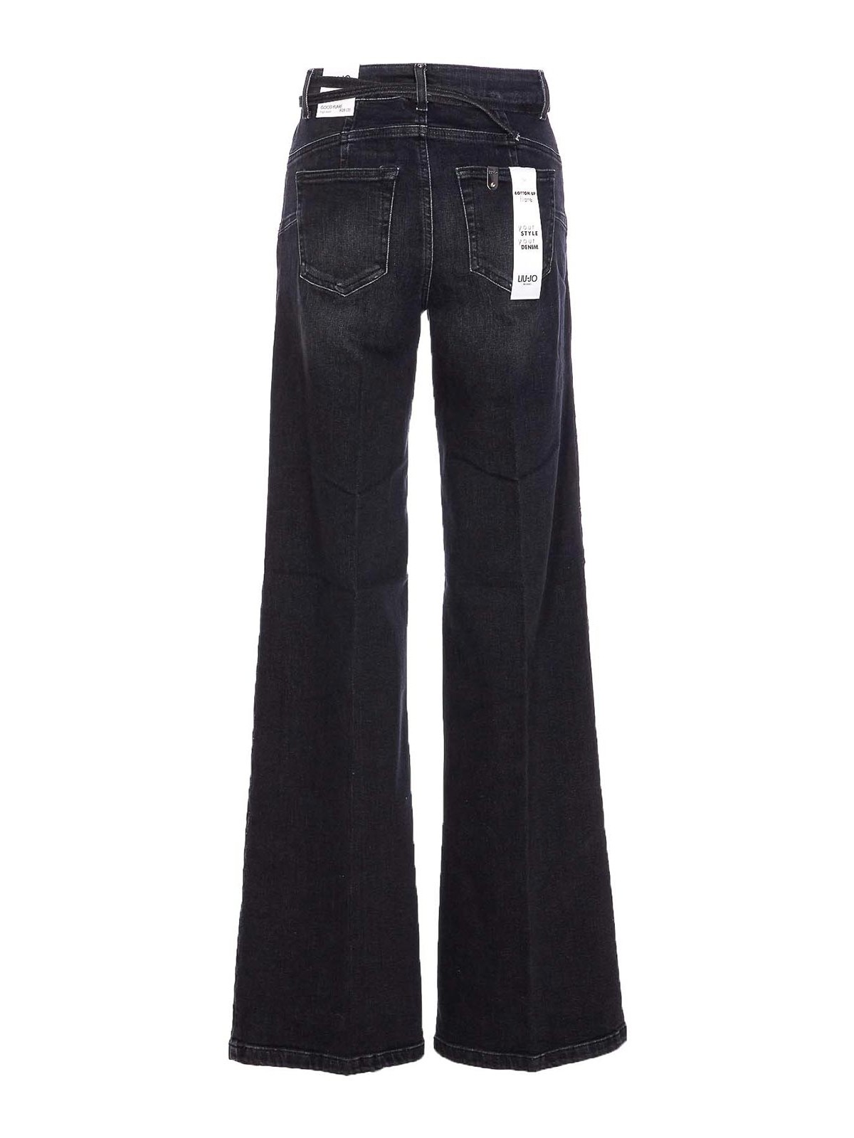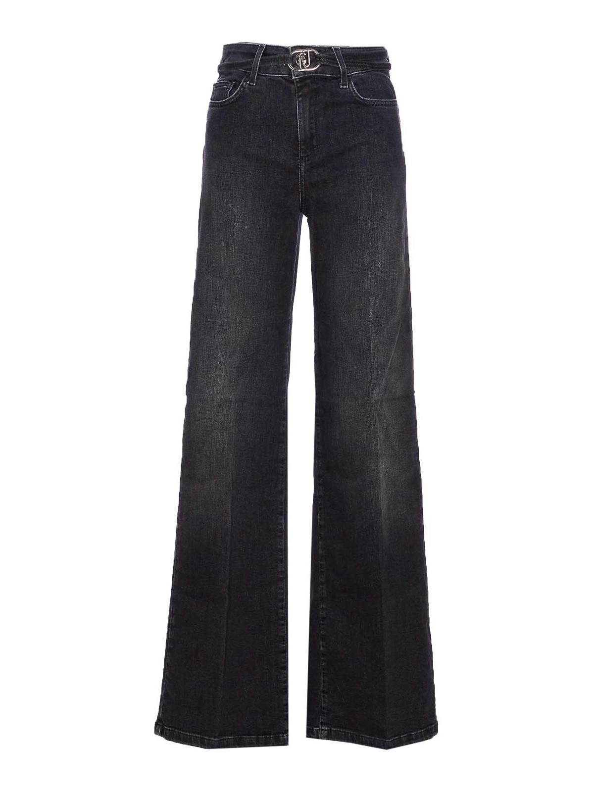 Liu jo black jeans, high waist, belt with plaque logo, zip and button closure, 5 pockets, good flare fit, straight fit