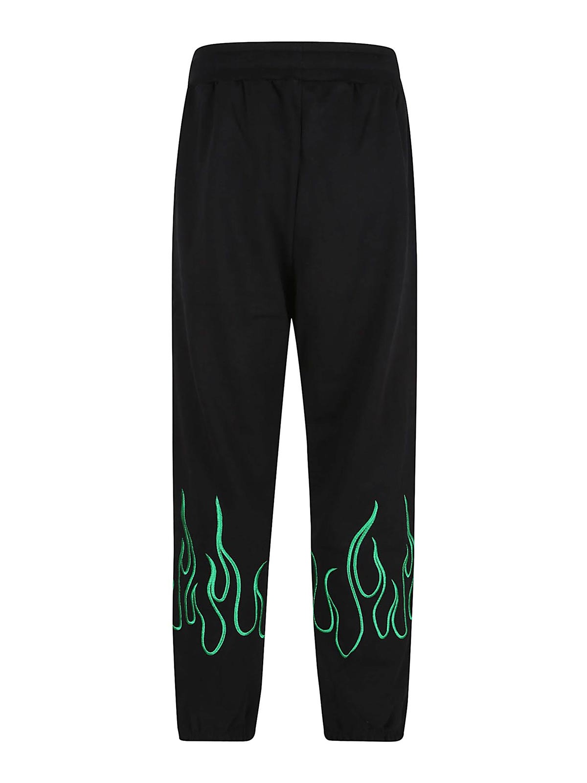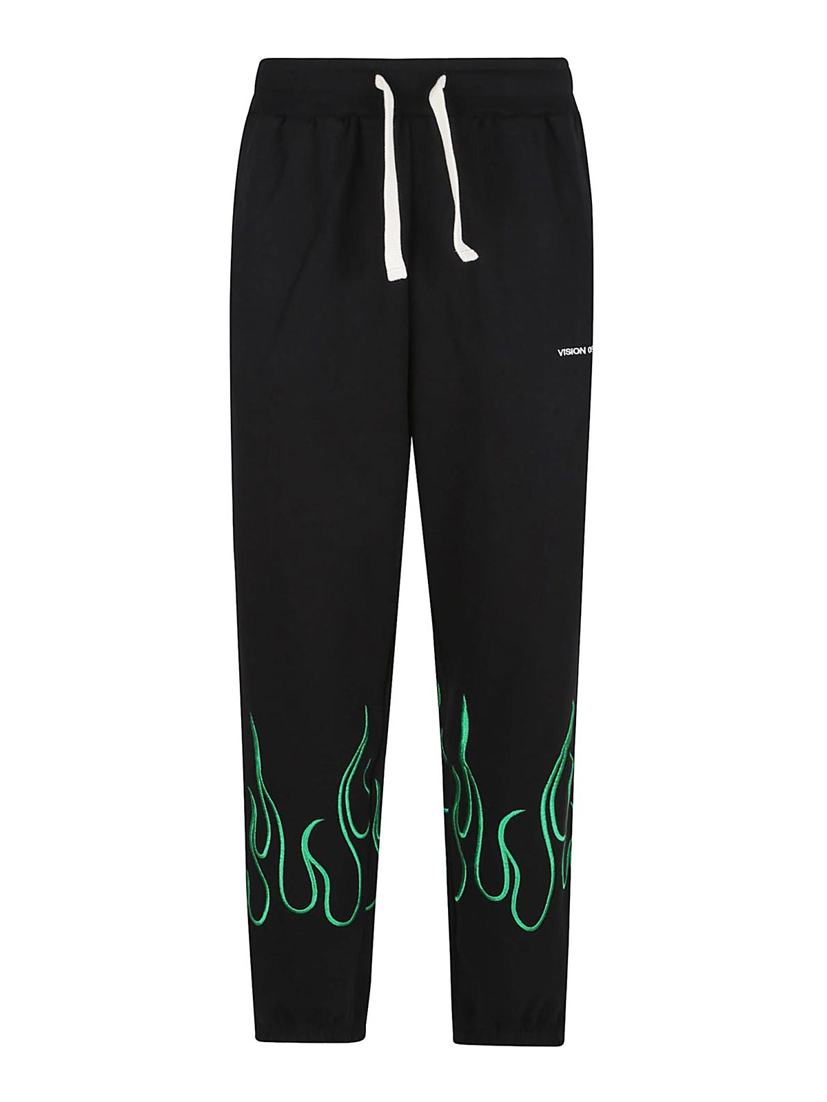 VISION OF SUPER: casual trousers - Black Pants With Embroidered Green Flames