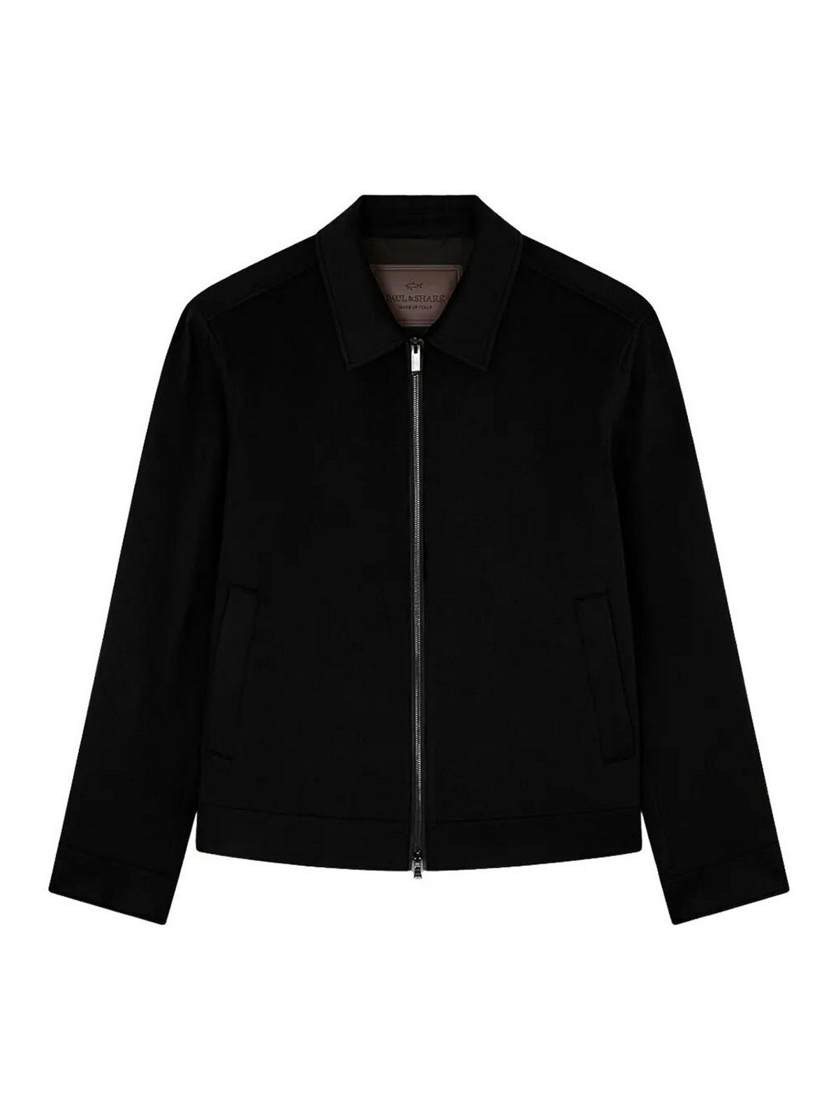This boxy-fit blouson in black is made from premium cashmere with Loro Piana's Green Storm System treatment, which gives the fabric waterproof and windproof properties without compromising its softness. It features a two-way zip closure, shirt collar, adjustable cuffs, and zipped welt pockets. The satin lining features the Paul & Shark logo reinterpreted as a heraldic coat of arms. Ideal for urban and refined looks, it offers comfort and protection in all weather conditions.