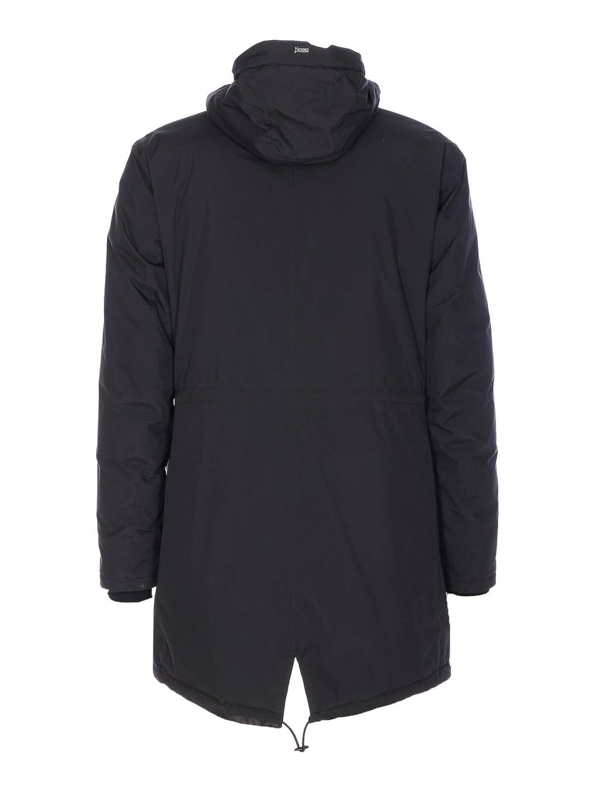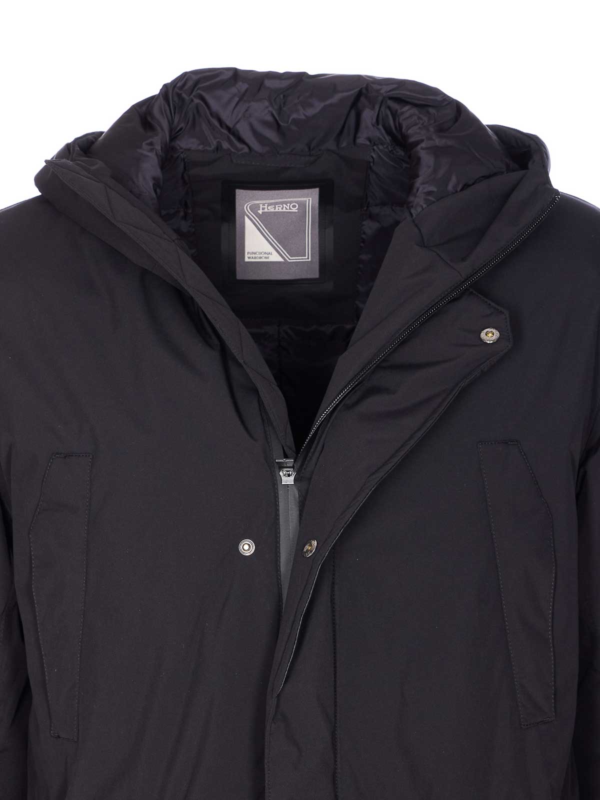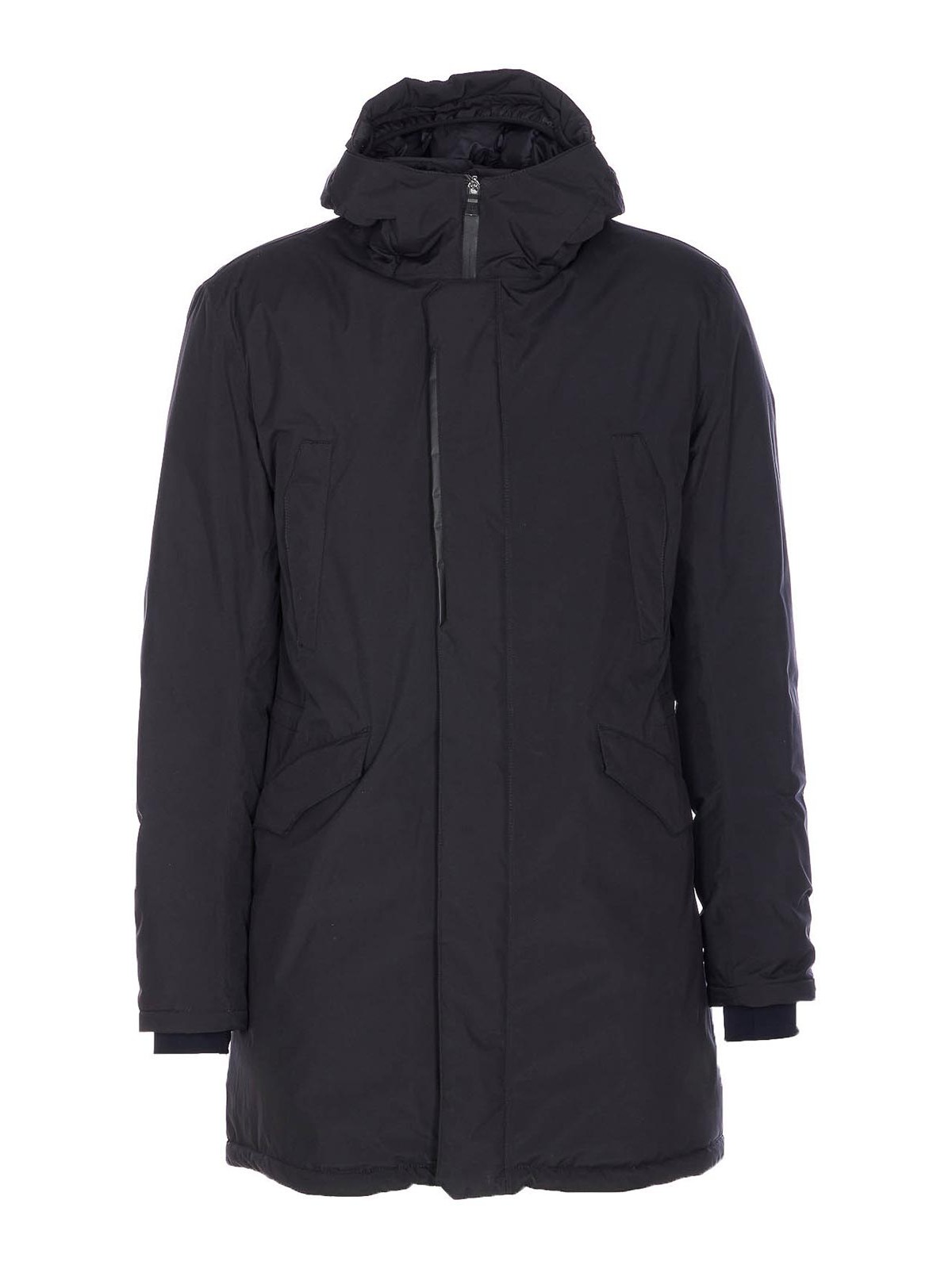 Herno blue padded parka with frontal zip and buttons closure, hppd detail, long sleeves,pockets with magnetic buttons
