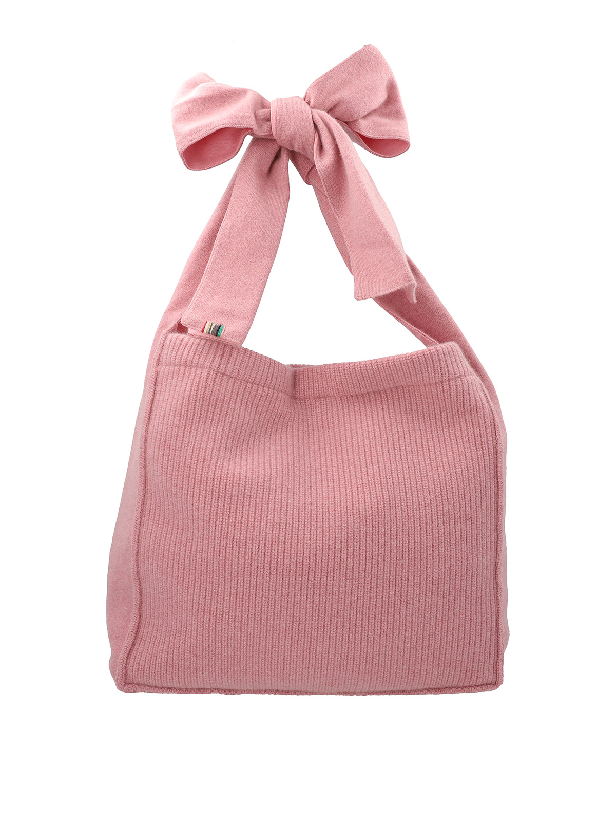 Ribbed cashmere blend shopping bag with snap button closure and adjustable handle.