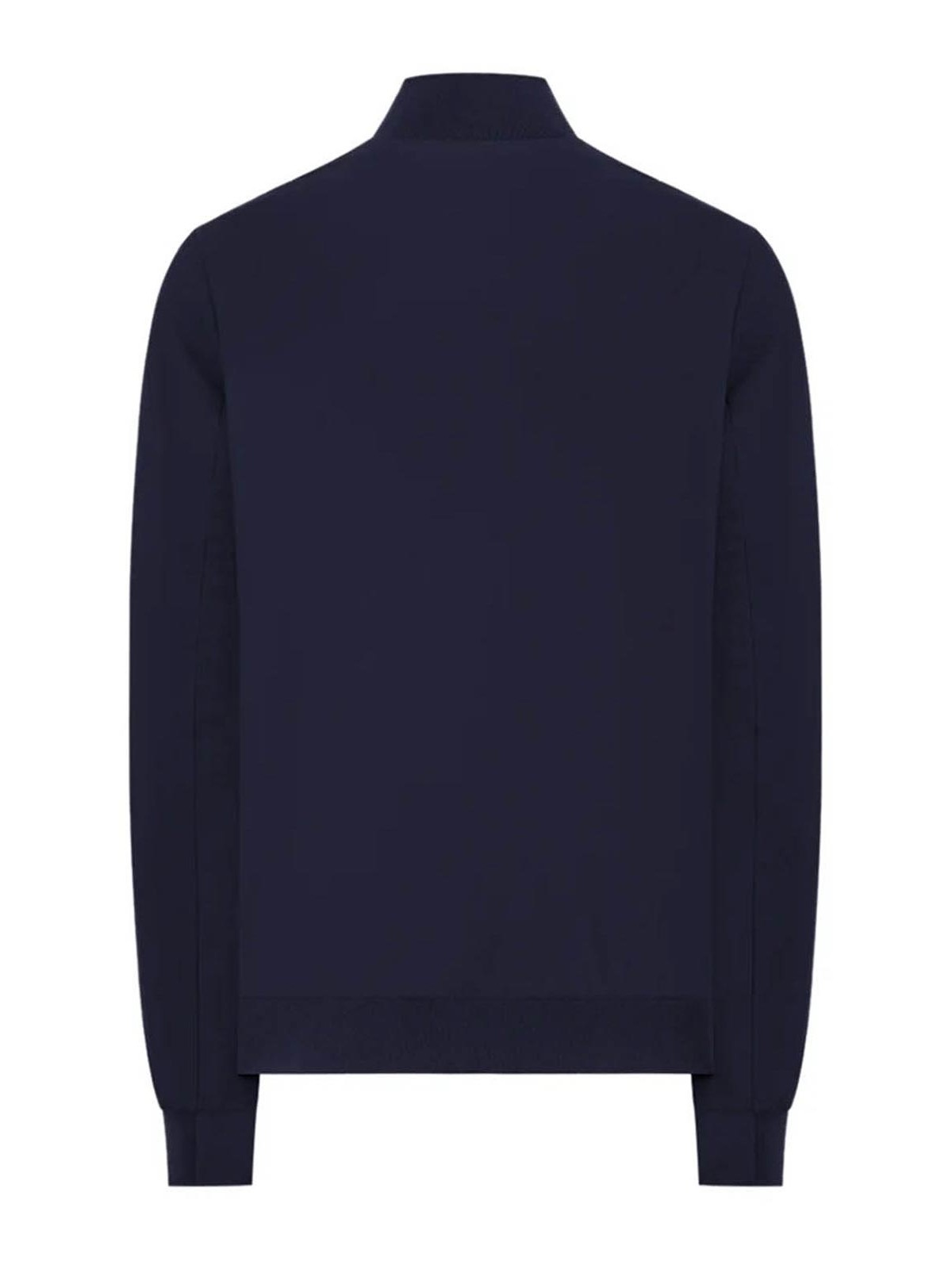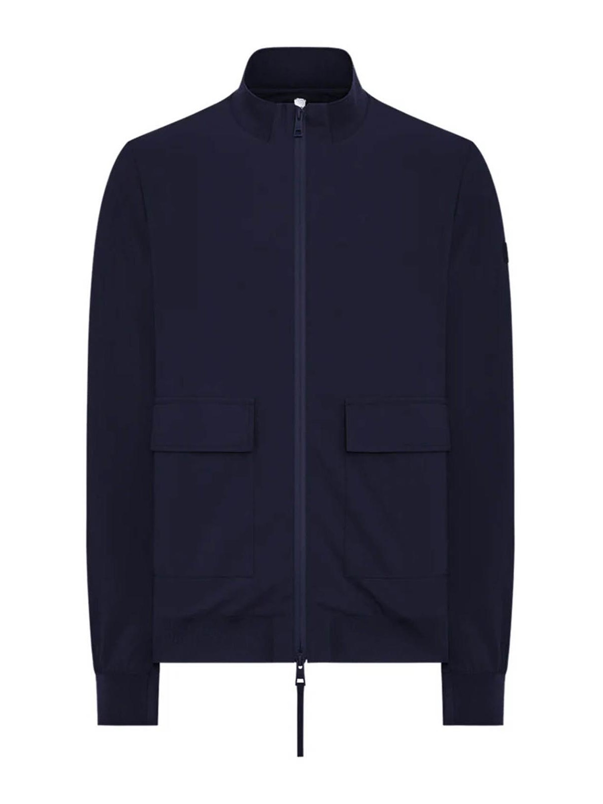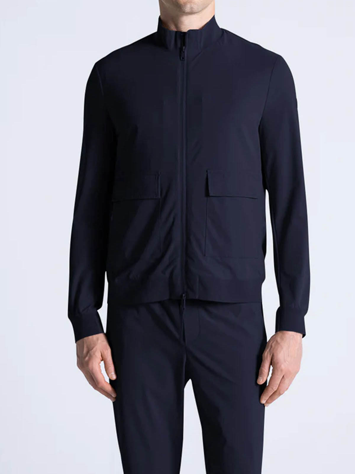 Bomber model in extremely comfortable bi-stretch technical fabric, front closure with water-resistant zip, front patch pockets with flap closed by snaps, side pockets inserted into the side with invisible zip and inside heat-sealed pockets with zip and mesh detail. under-sleeve and under-zip vents in coupled neoprene, laser-cut and personalized with perforated logo. high breathability that favors the regulation of body temperature.