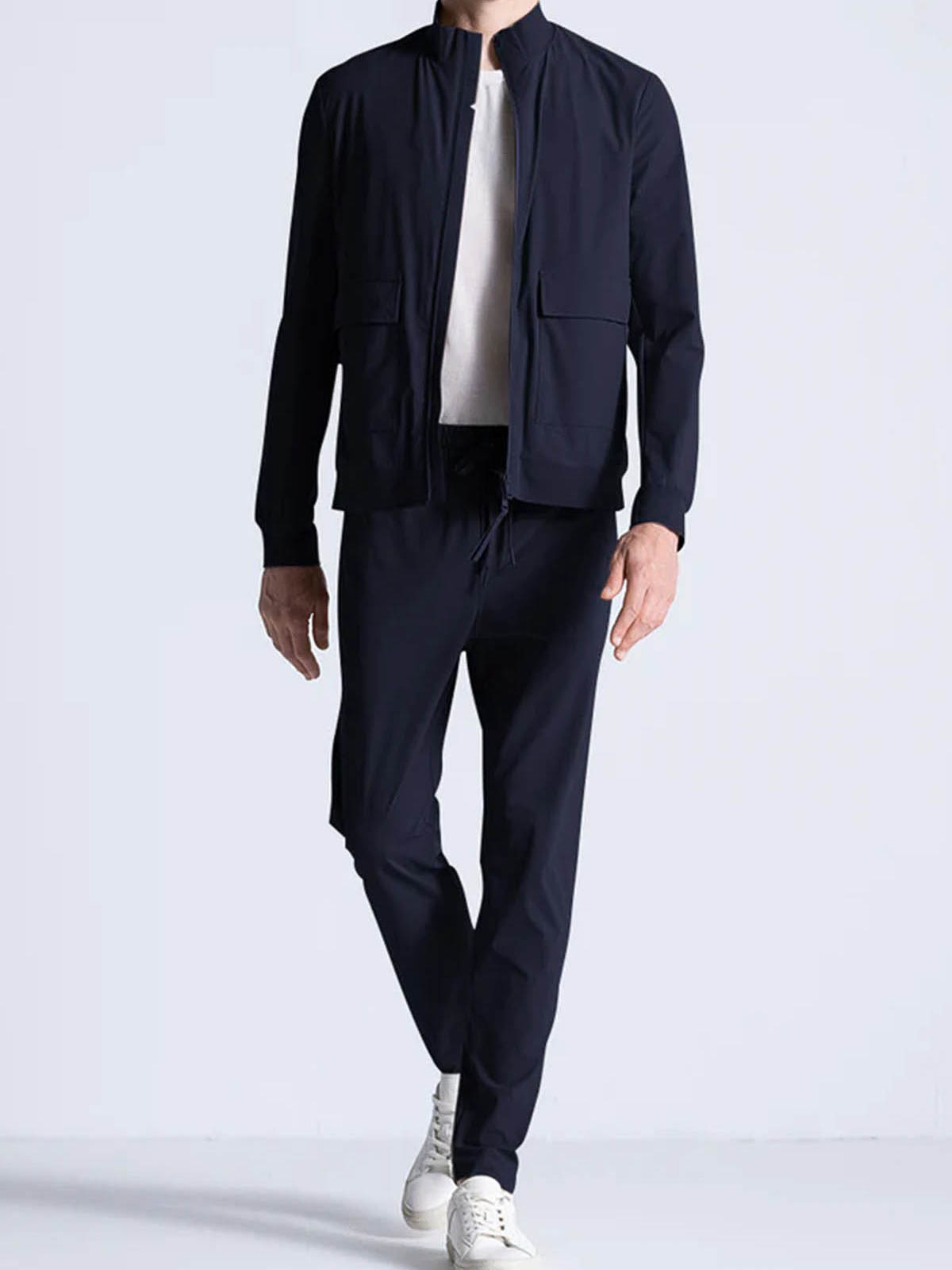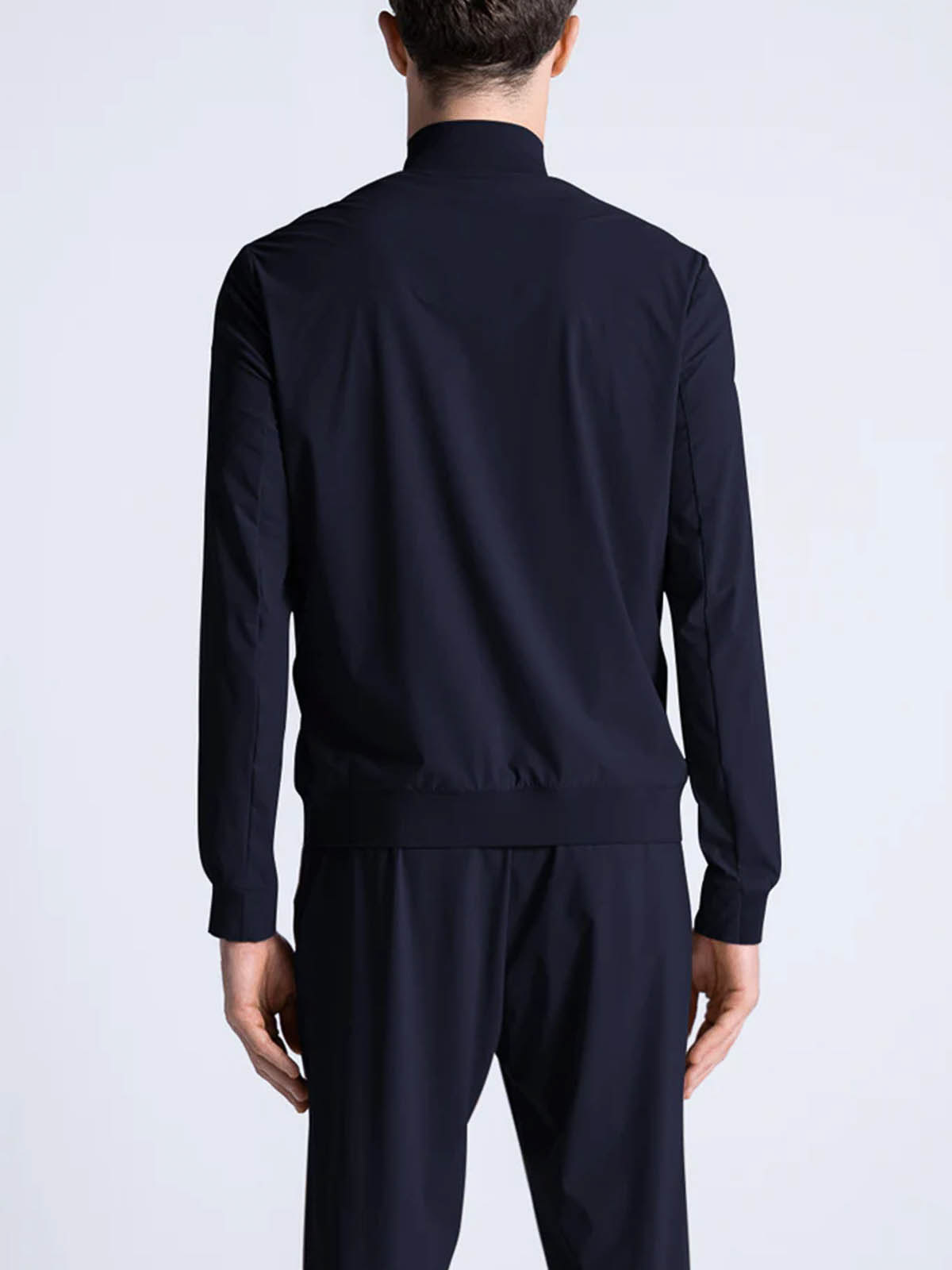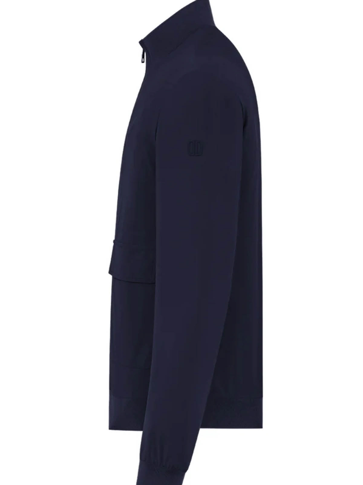 Bomber model in extremely comfortable bi-stretch technical fabric, front closure with water-resistant zip, front patch pockets with flap closed by snaps, side pockets inserted into the side with invisible zip and inside heat-sealed pockets with zip and mesh detail. under-sleeve and under-zip vents in coupled neoprene, laser-cut and personalized with perforated logo. high breathability that favors the regulation of body temperature.