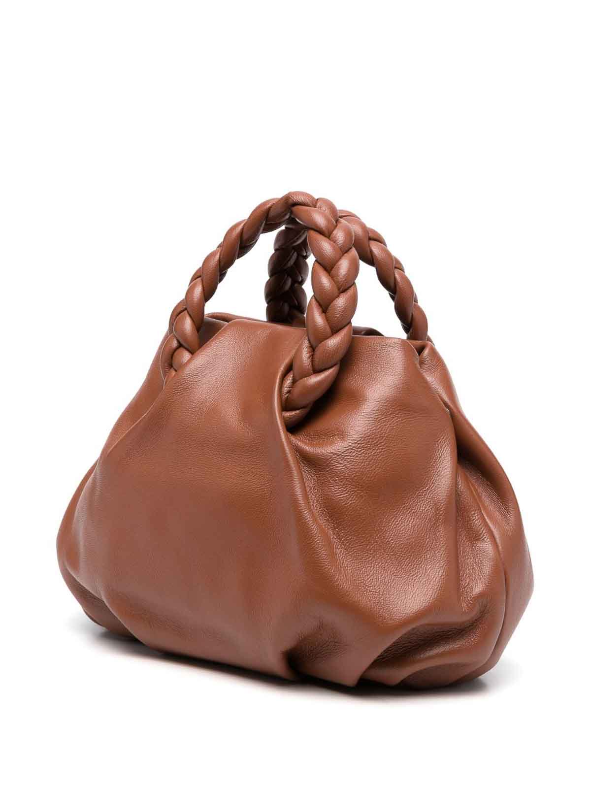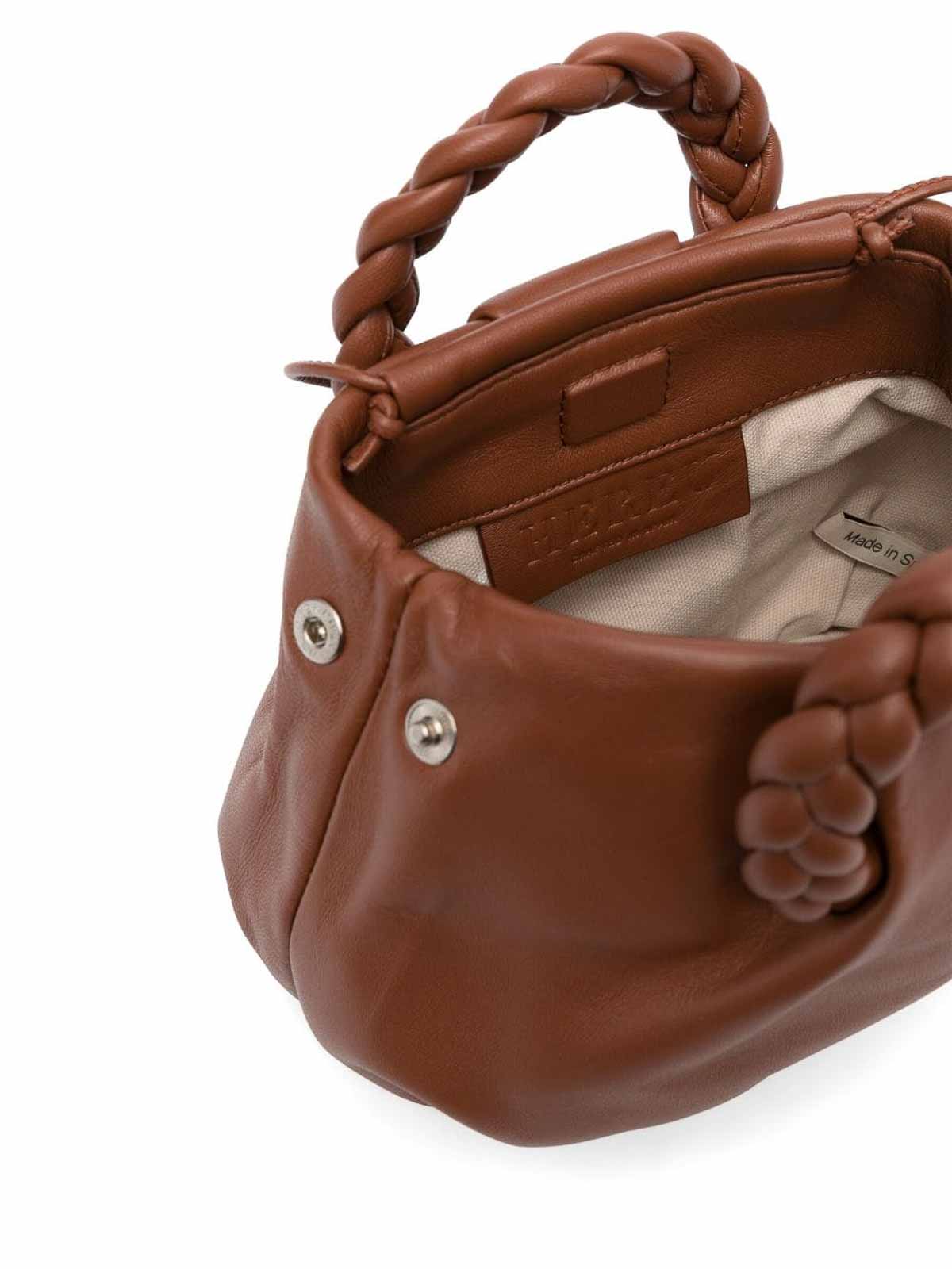Bombon crossbody bag from hereu featuring chestnut brown pleat detailing braided top handles adjustable shoulder strap and concealed magnetic