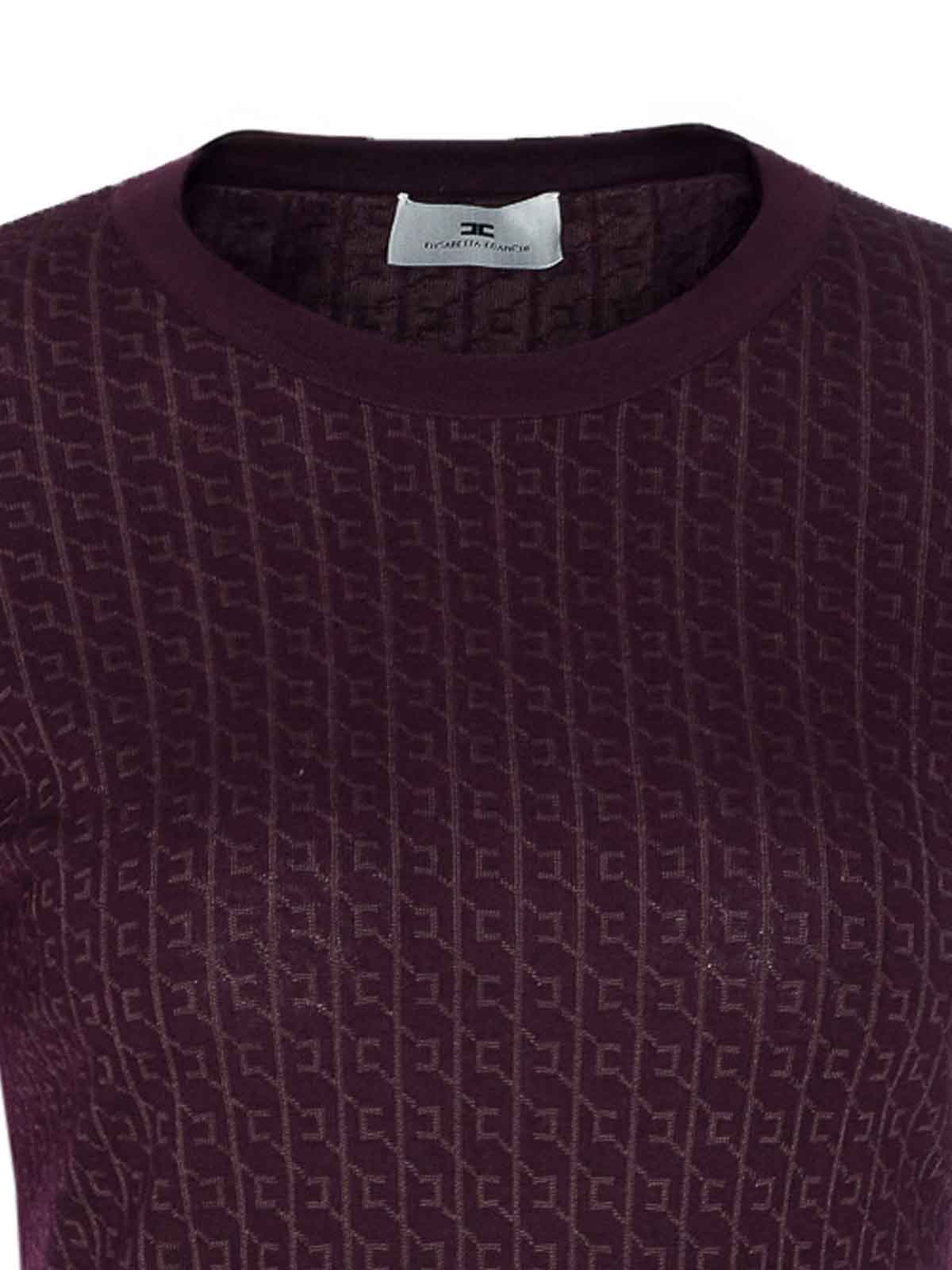 Elisabetta franchi bordeaux sweater, crewneck, long sleeves, all over logo