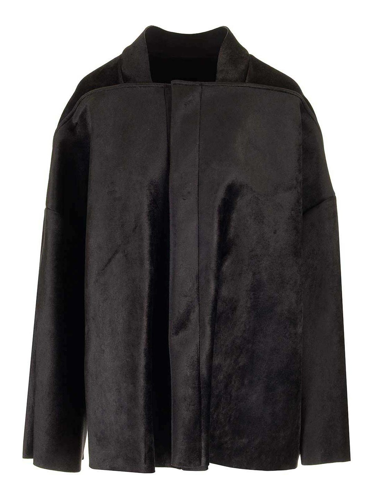 Boxy fit jacket in fur-effect viscose from rickowenslilies, with dropped shoulders, straight line, hidden fastening.