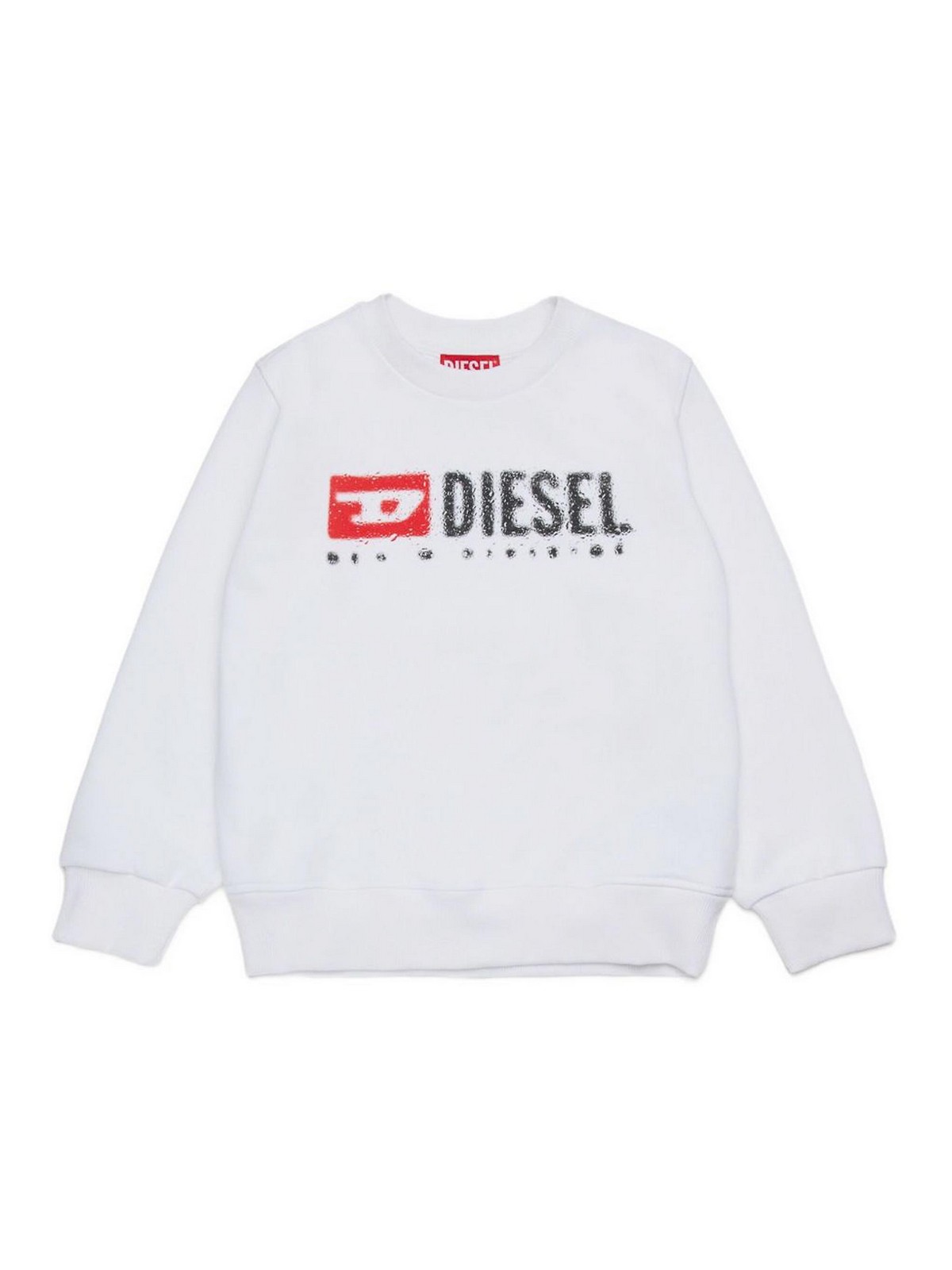 Boys sweatshirt in white blend by diesel kids with logo print on the, diesel kids, boy's, sweatshirt, white, blend, logo print on the