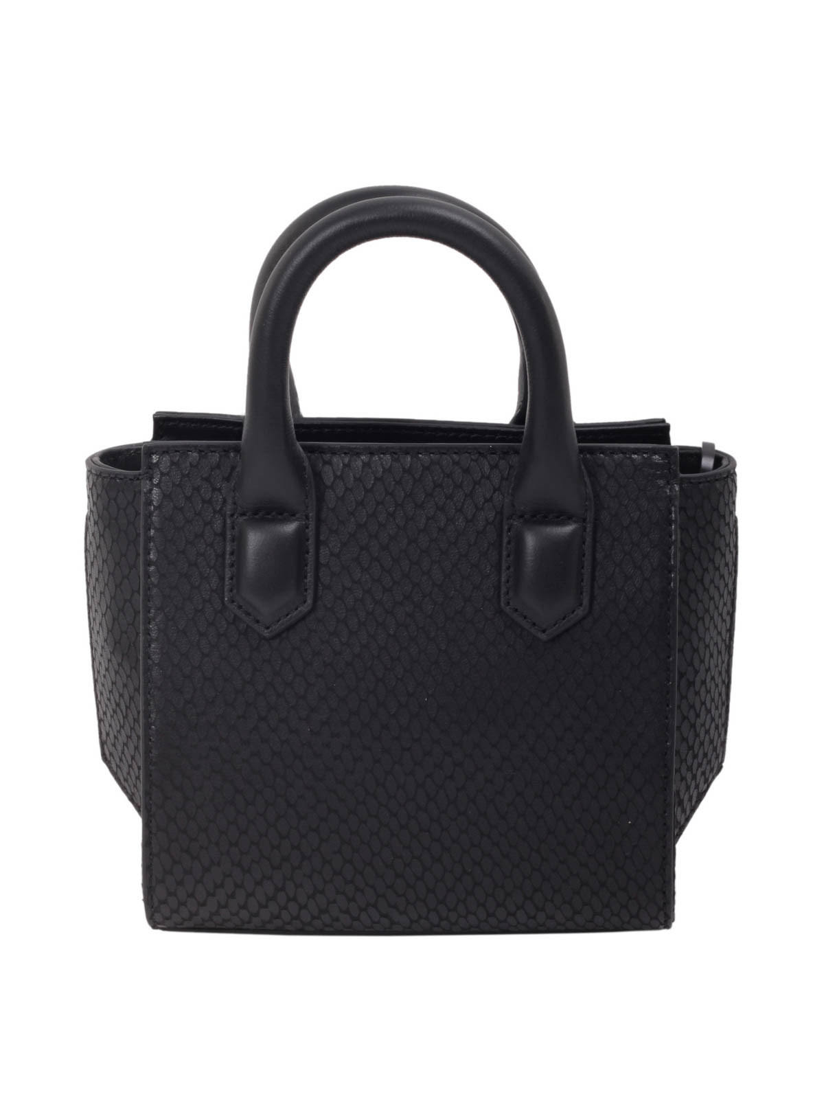 Honeycomb print leather mini bag featuring front metal logo plaque, double handle.