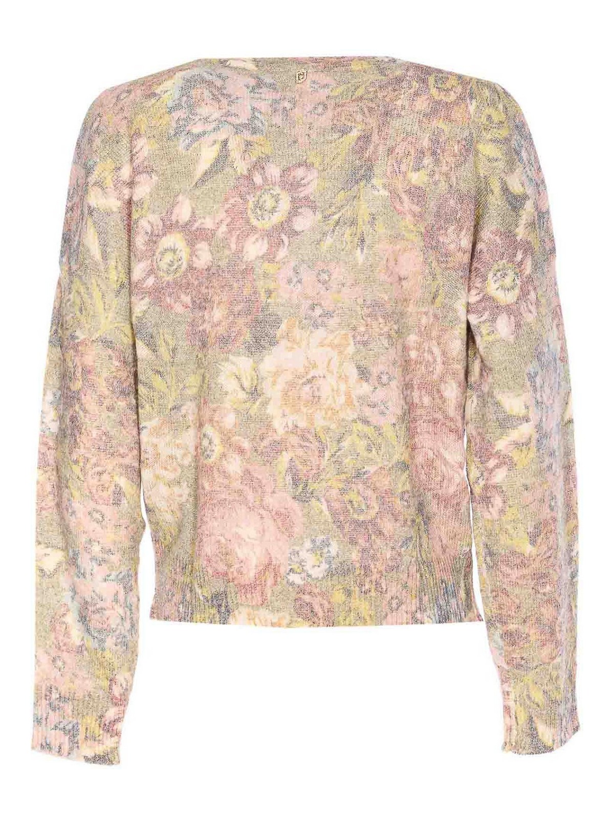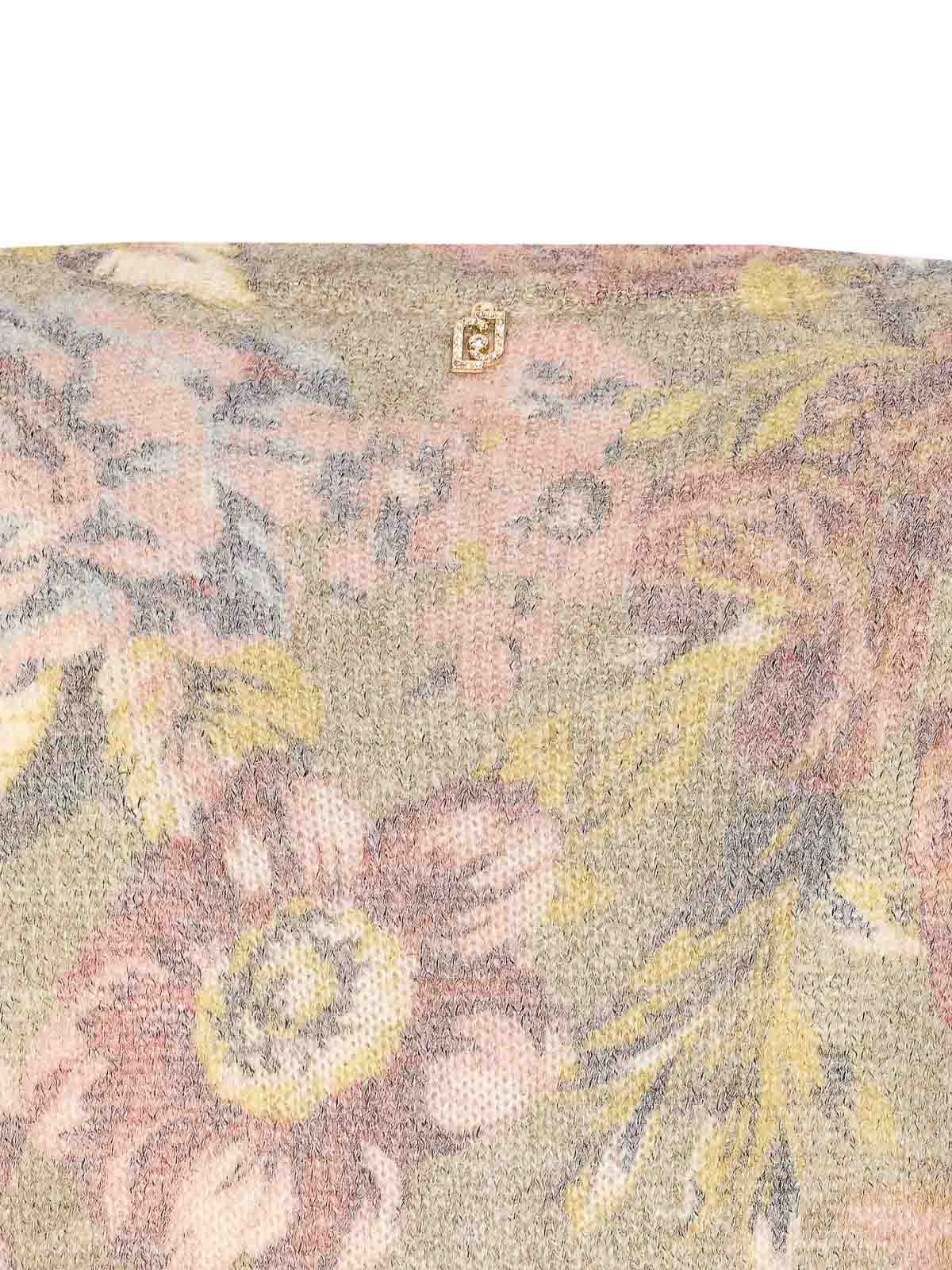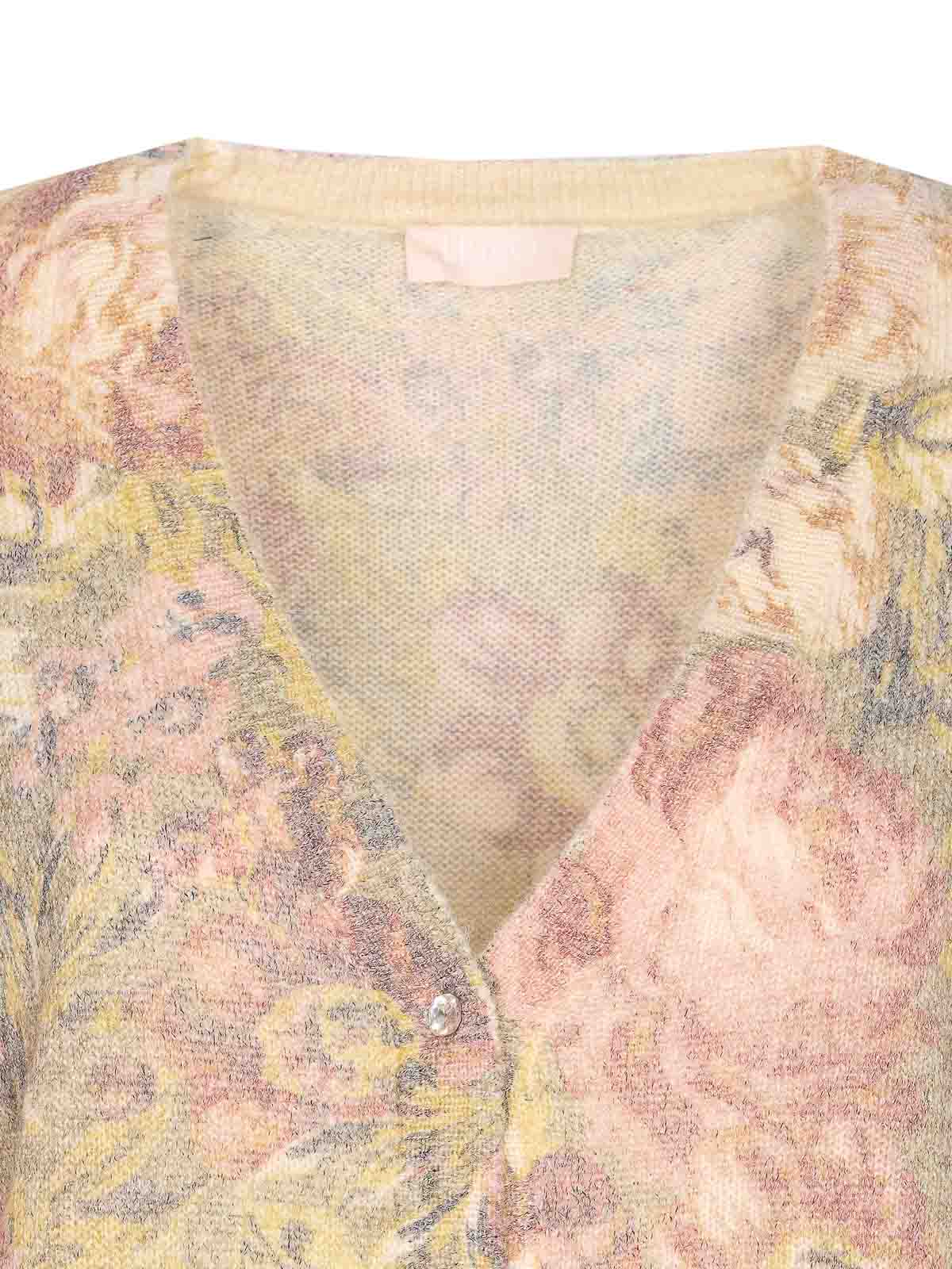 Liu jo multicolor cardigan with jewels buttons floral printed v-neckline