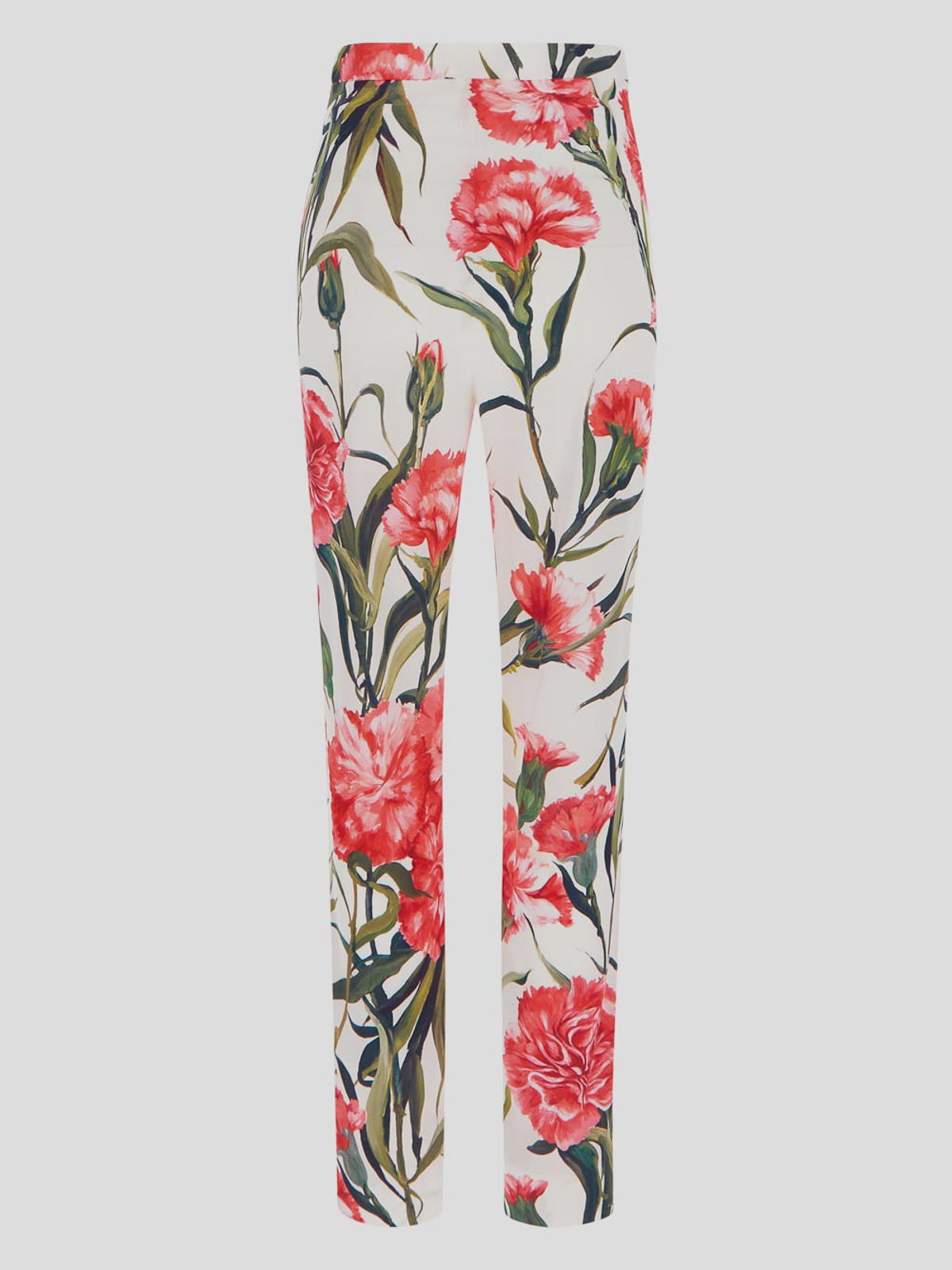 Dolce & gabbana trousers in white silk with carnations print all-over