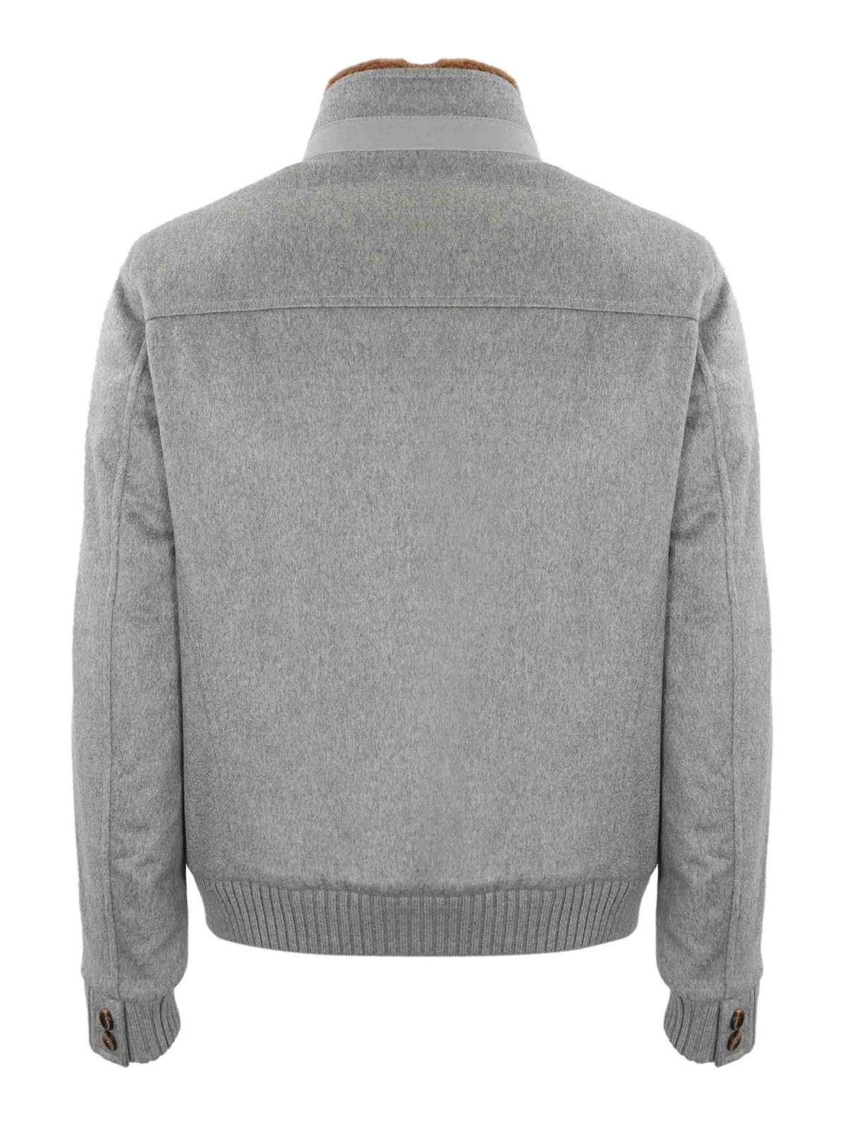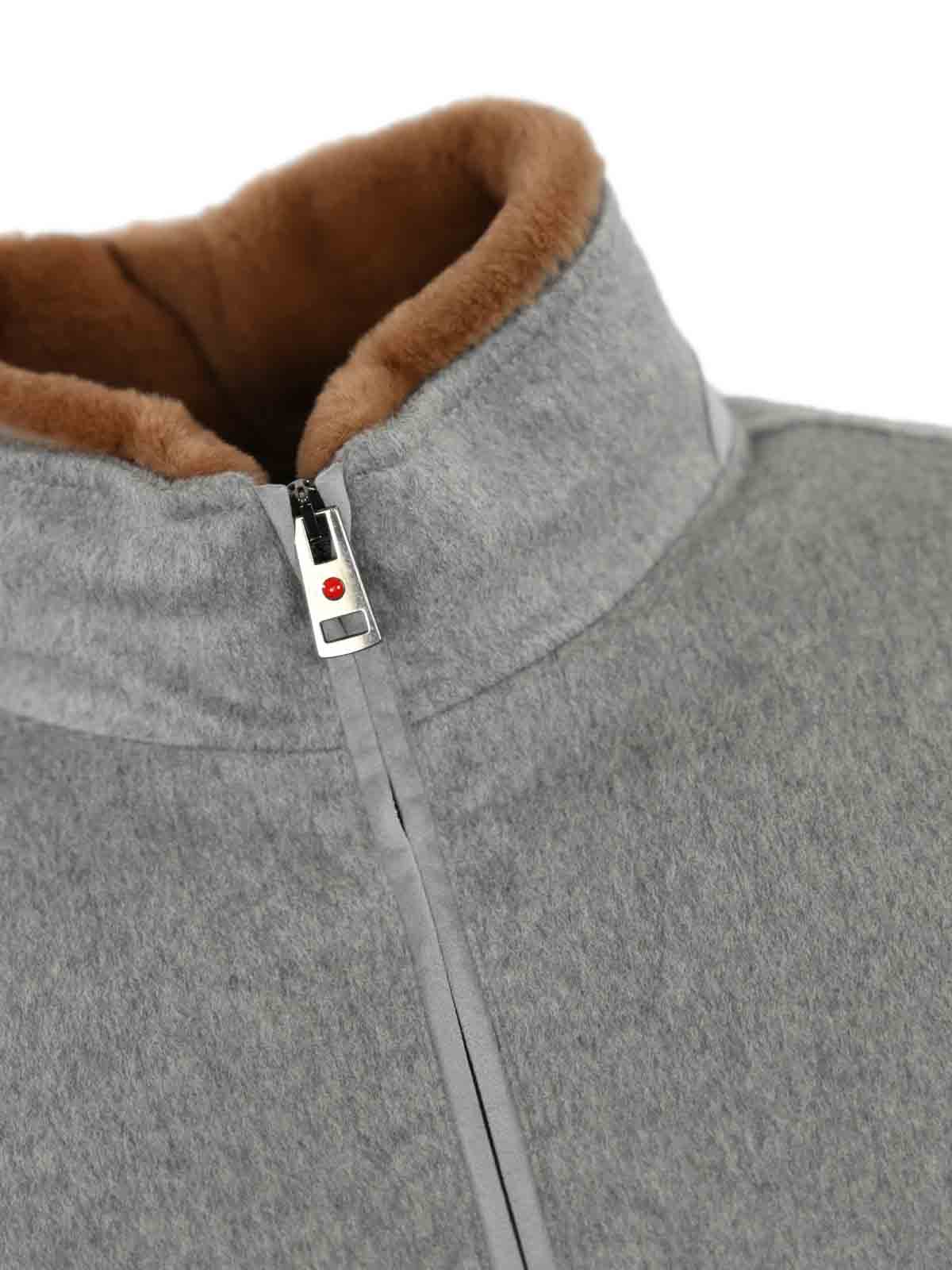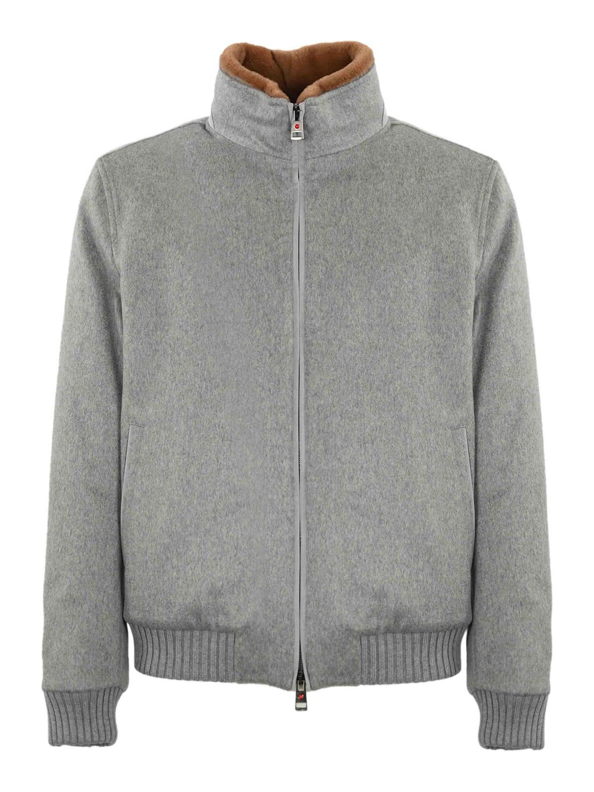 Cashmere jacket high collar long sleeves ribbed with double slider zip side pockets