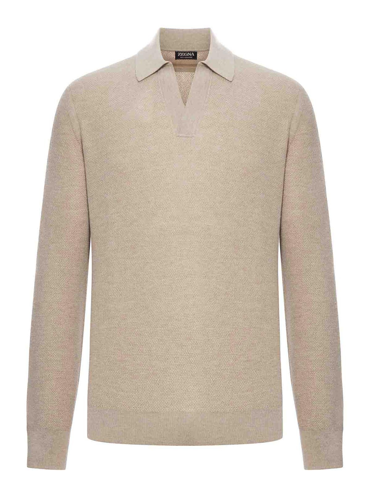 Classic collar, long sleeves, straight hem, ribbed cuffs and hem, signature tone, on, tone on the back, - beige