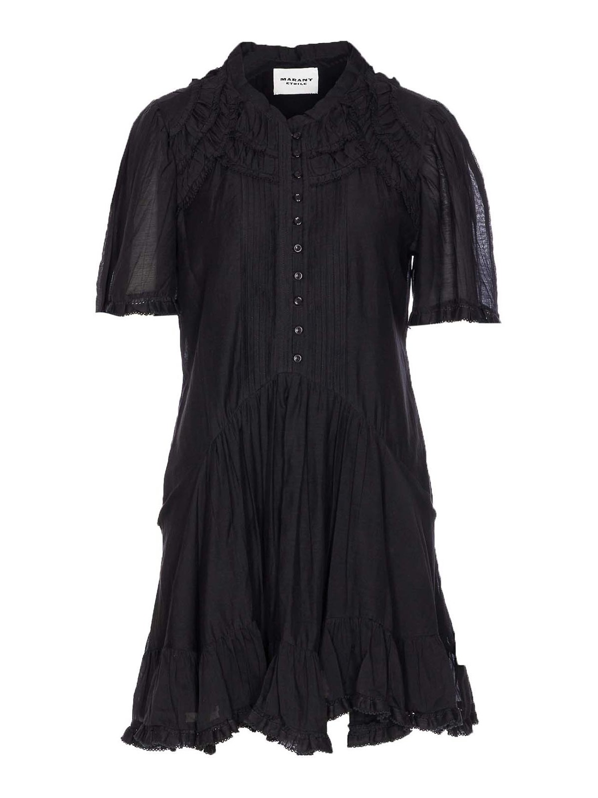 Isabel marant etoile black celyana dress, round neck, buttons closure,bounced gown, baloon sleeves, lace profiles