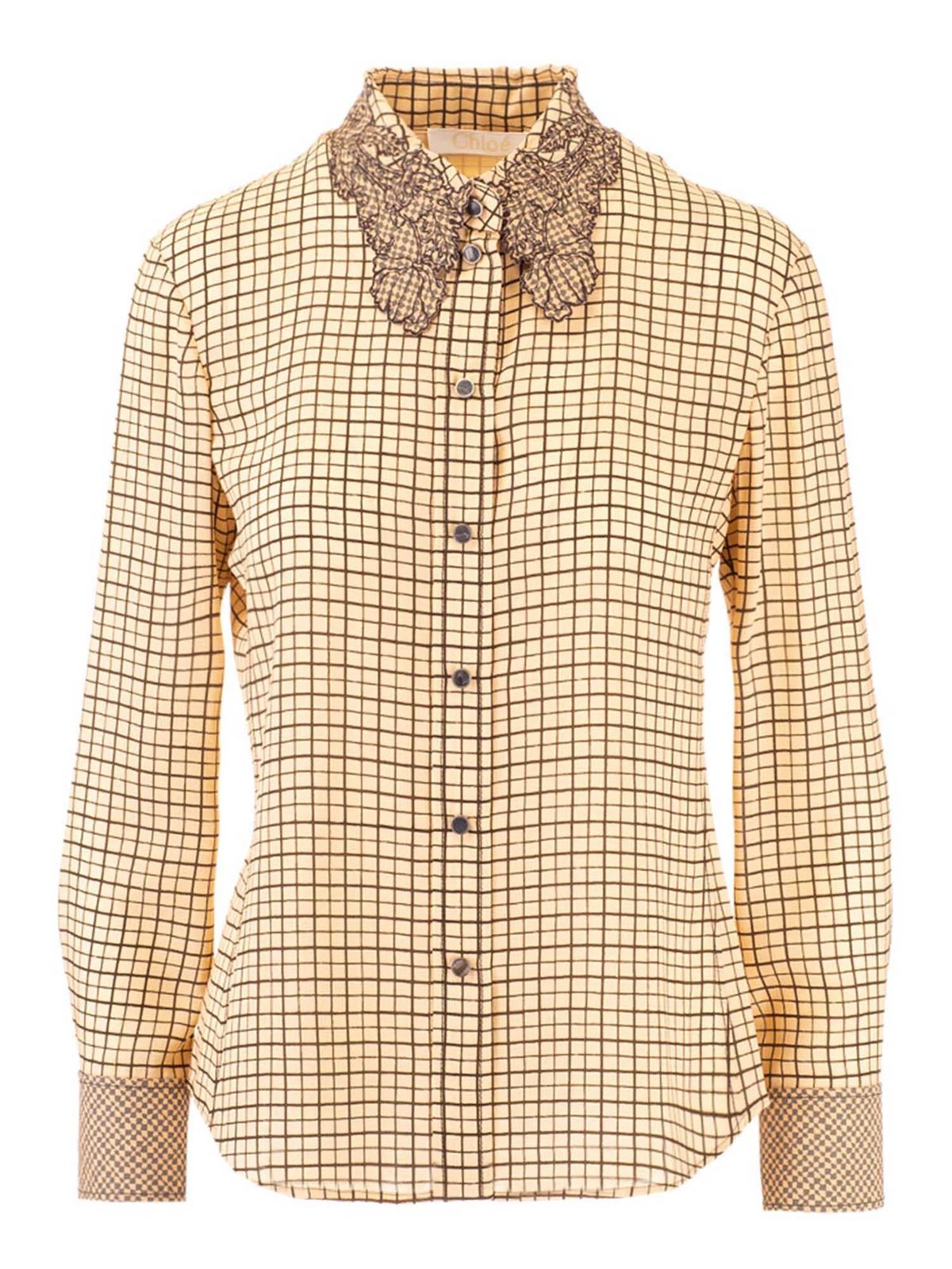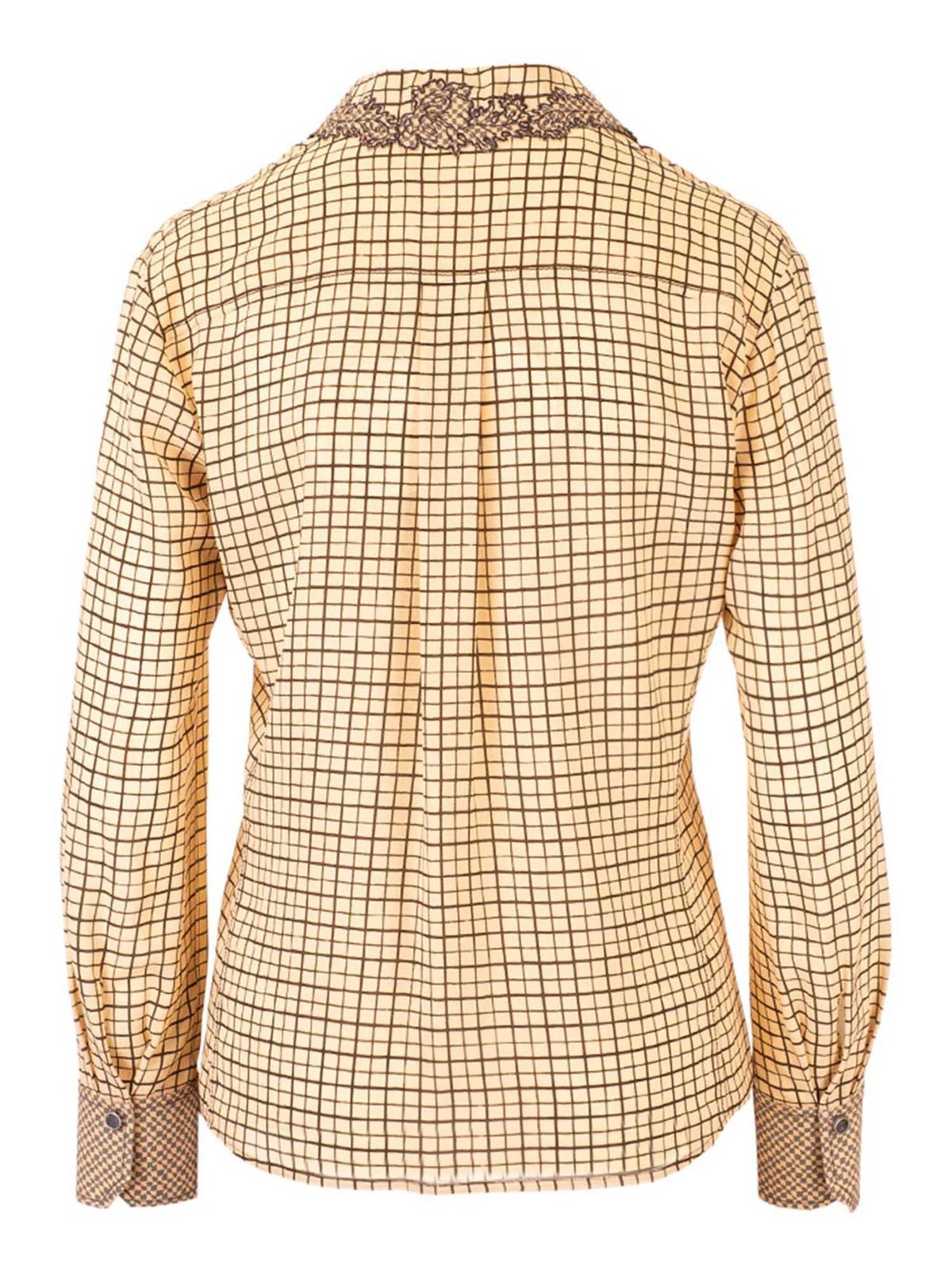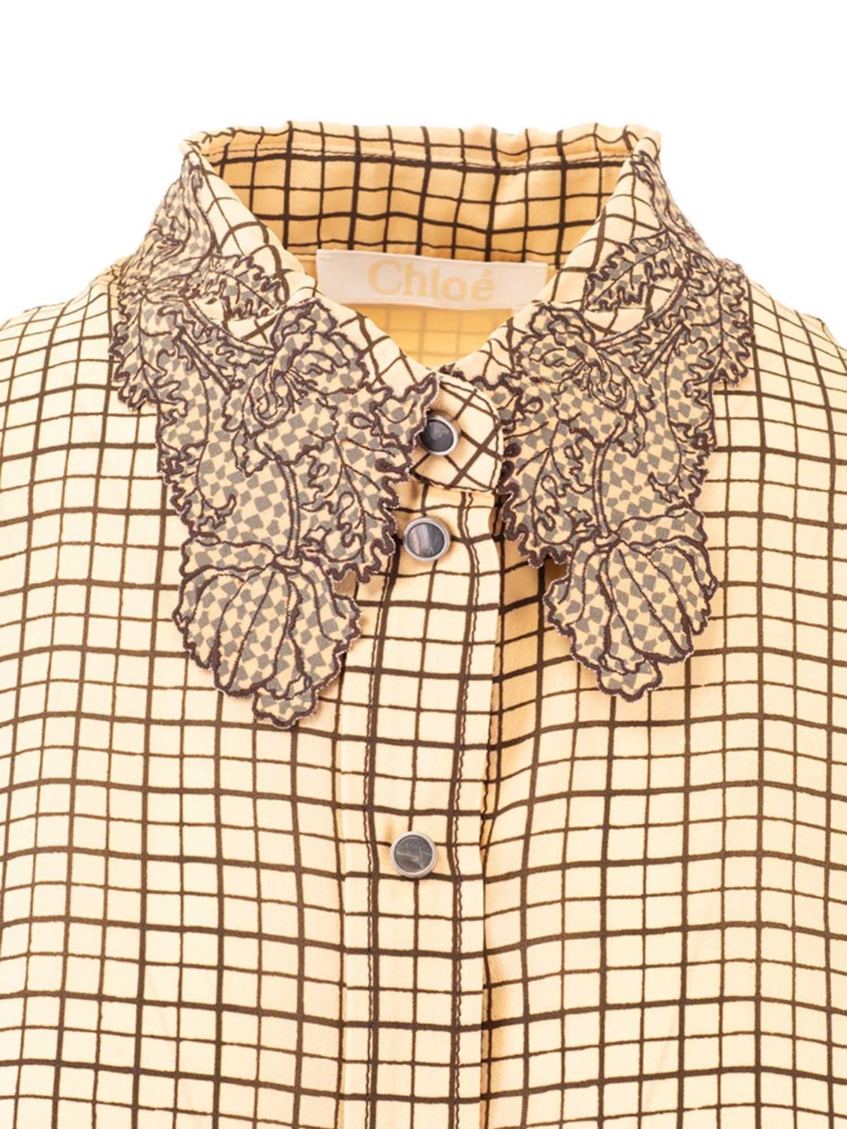 Crepe de Chine shirt Color: beige Embroidered collar Check print Buttoned cuffs