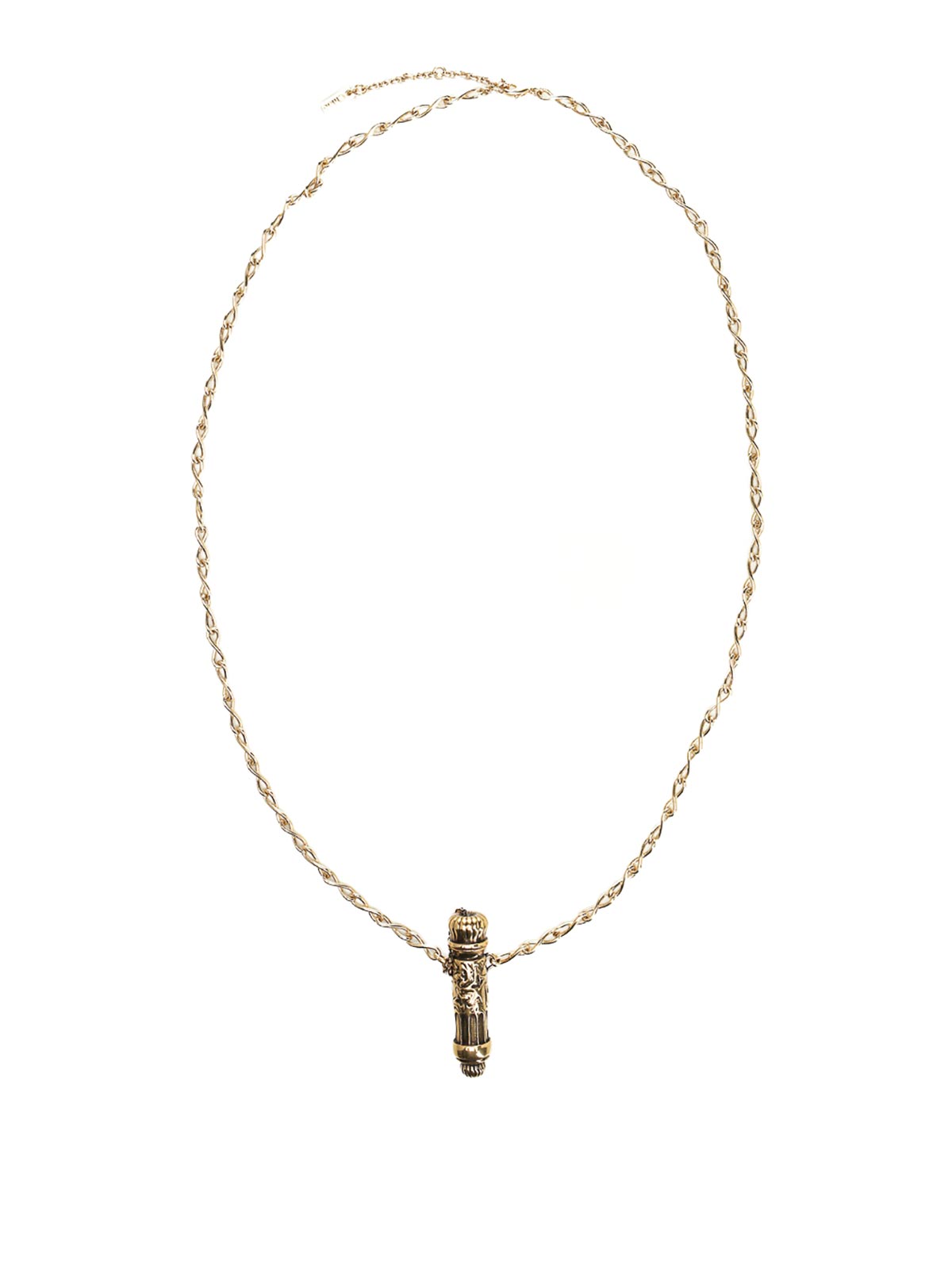 Chlo elixir pendant necklace in vintage featuring an ornamental tubular vial set in an endless chain