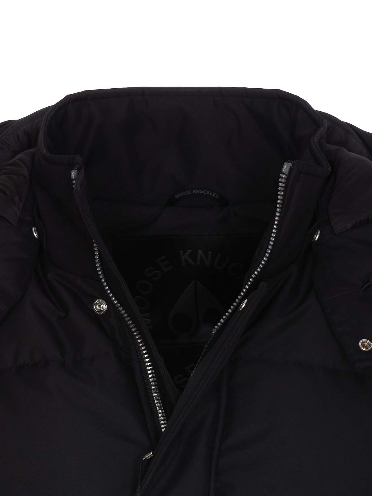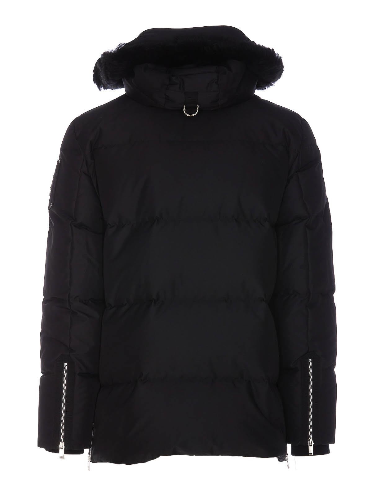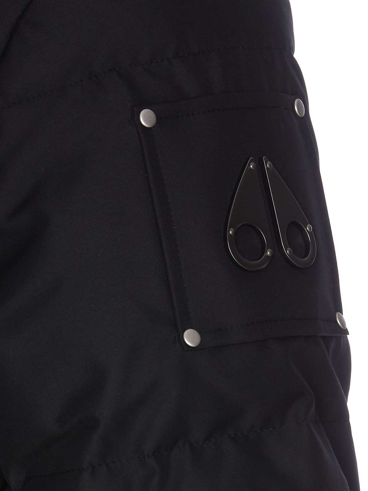 Moose knucles black cloud d neoshear jacket with frontal zip and buttons emovable hood with faux lateral pockets lateral patch logo padded