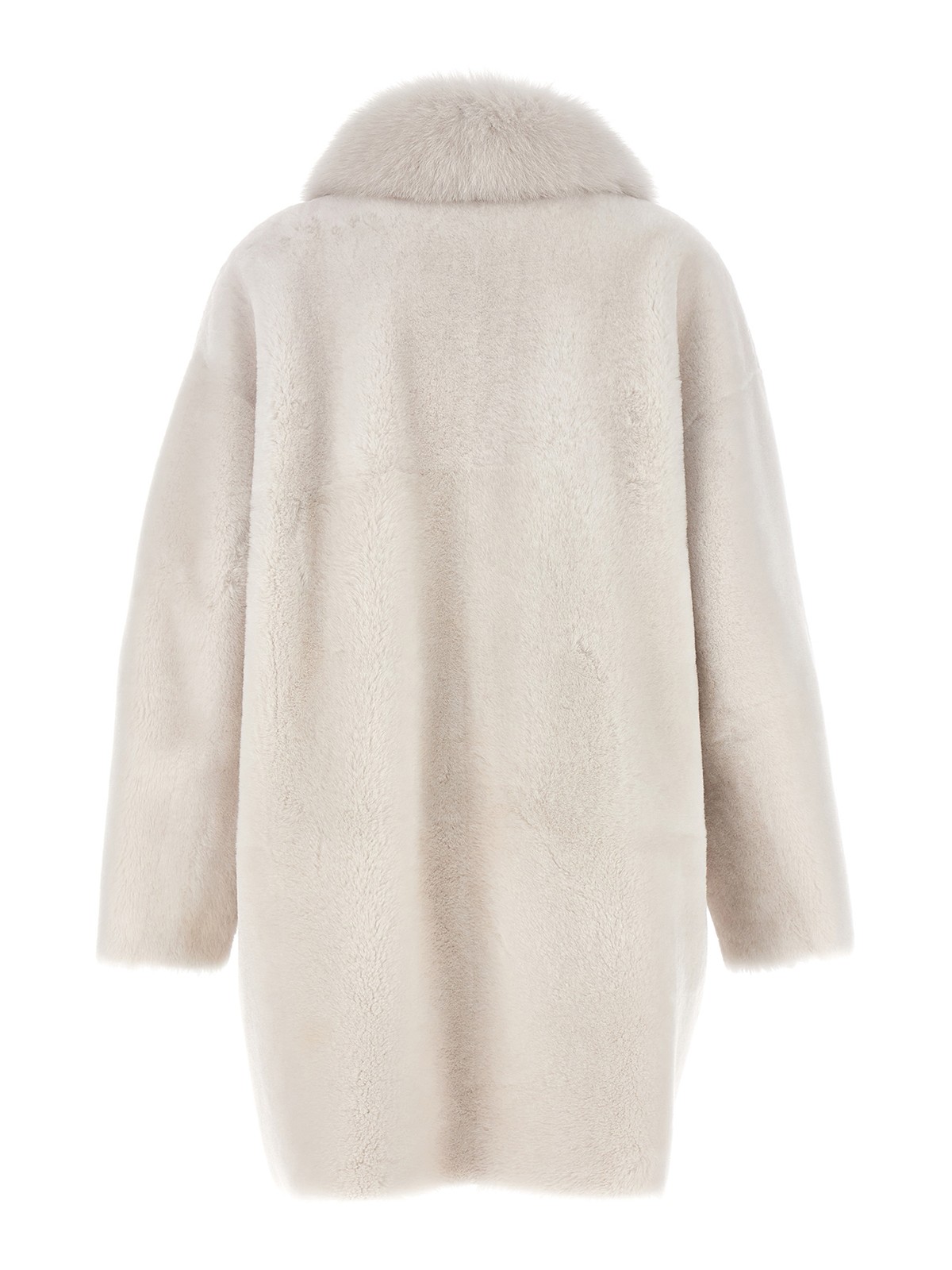 Merino straight-volpe shadow long fur coat featuring fox inserts front button closure pockets long sleeves
