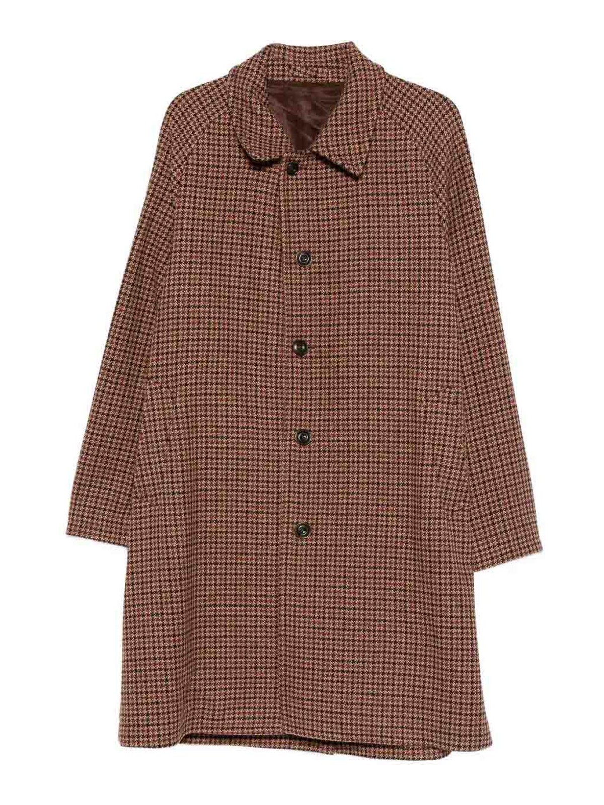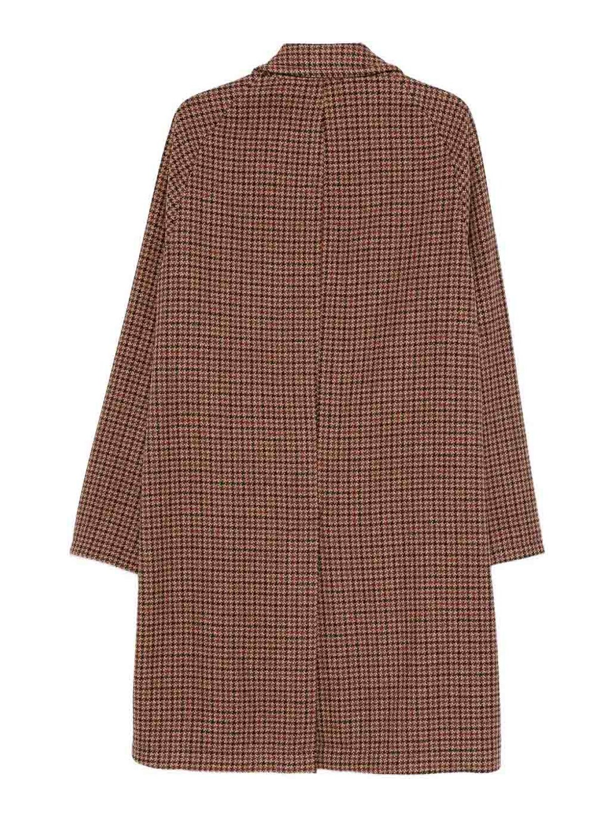 Brown Prince of Wales motif, button closure, long sleeves, front pockets.