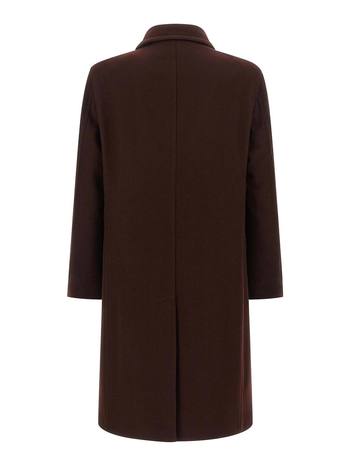 Double-breasted 'sherry' wool and cashmere blend midi coat with front horn button closure, collar with back leather insert, mirror lapels with removable metal brooch, pockets, long sleeves, structured shoulder, back split, half cupro monogram lining, two inner pockets. the garments of the 'pino lerario' line use fabrics created exclusively for tagliatore.