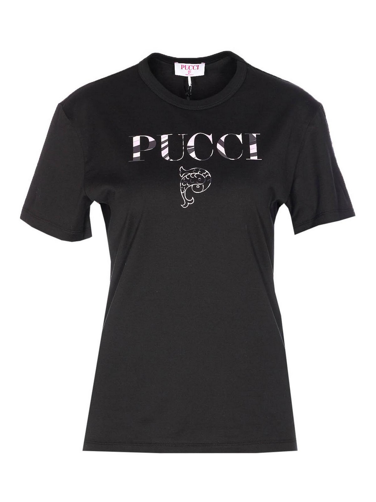 Emilio pucci black t-shirt, crewnck, print logo on the front