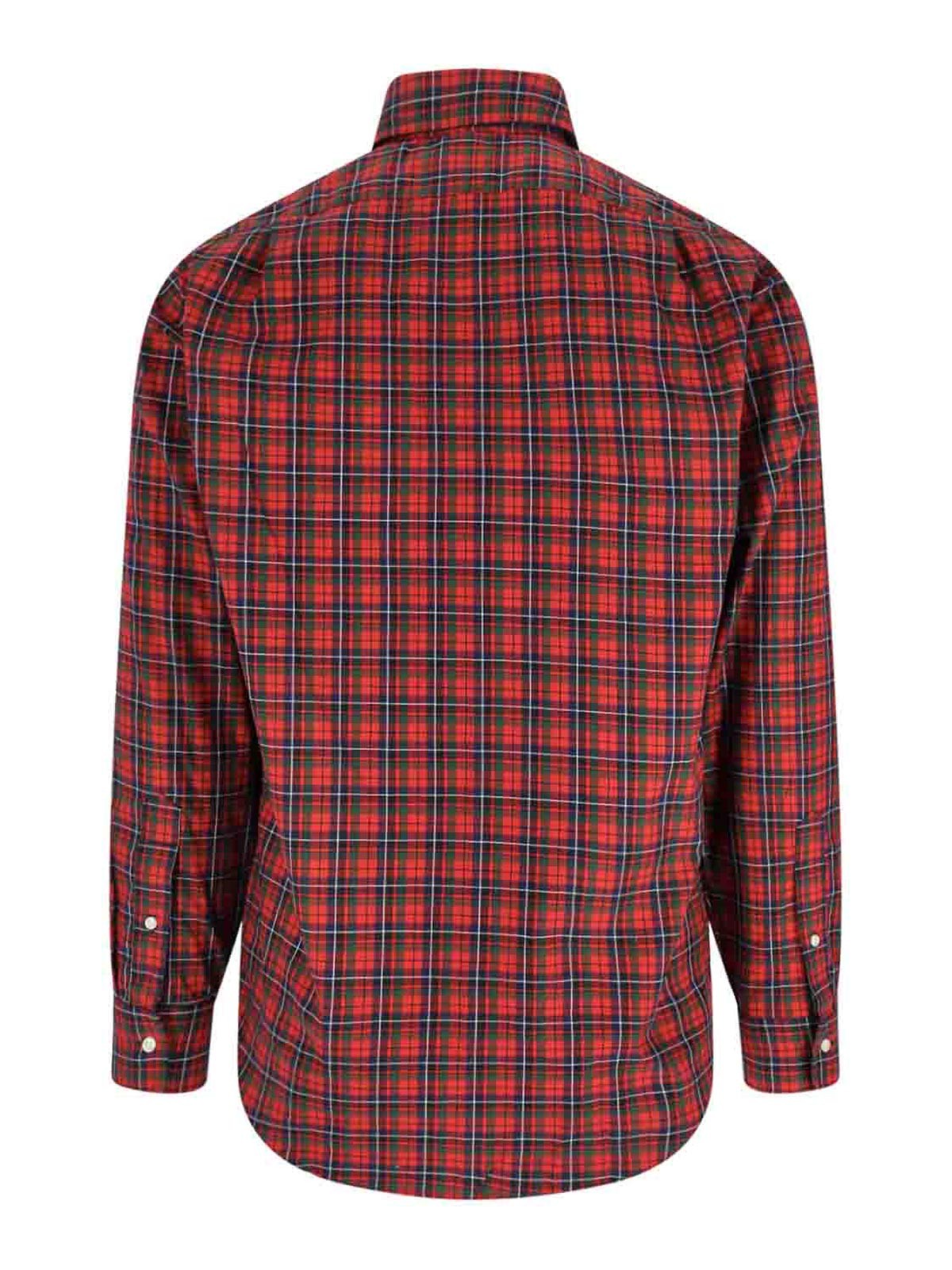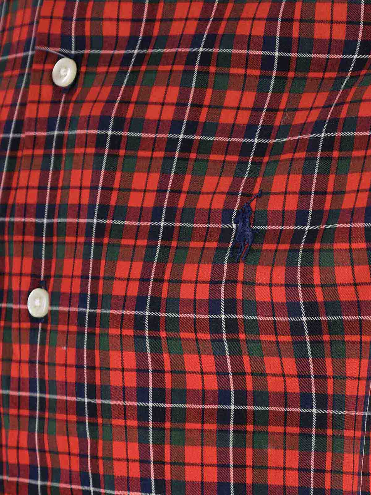 Polo Ralph Lauren cotton shirt, red, tartan motif with multicolor details, classic collar, button closure, chest logo embroidery, buttoned cuffs, curved hem.