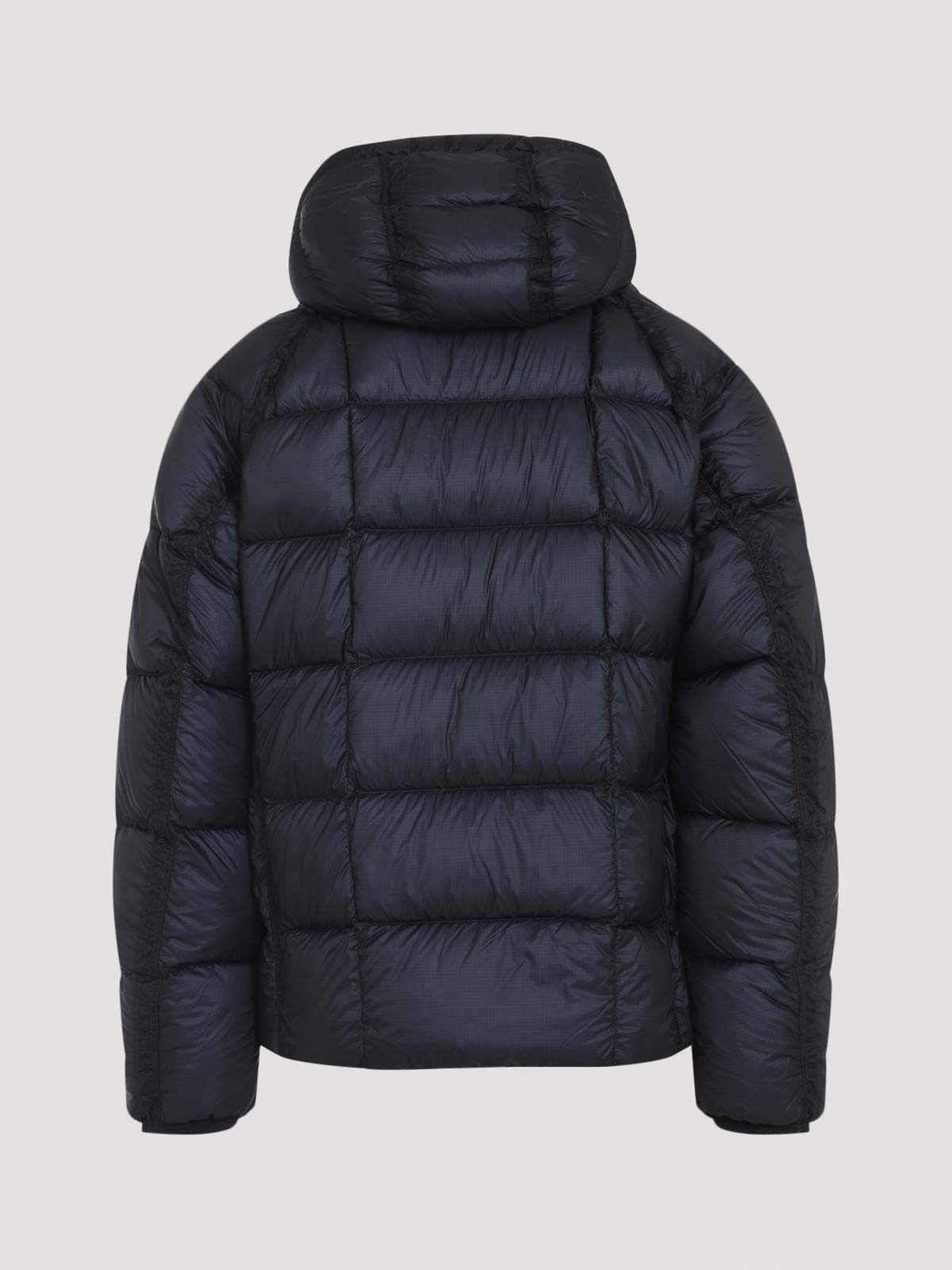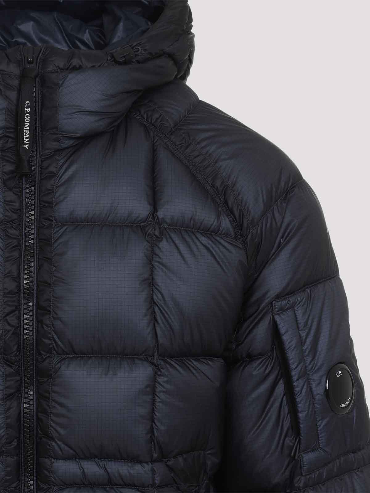 Cp company total eclipse medium jacket in dd, shell crafted tonal hood stand, up collar zipped side pockets long sleeves zipped pocket with patch logo elastic cuffs straight hem padded design