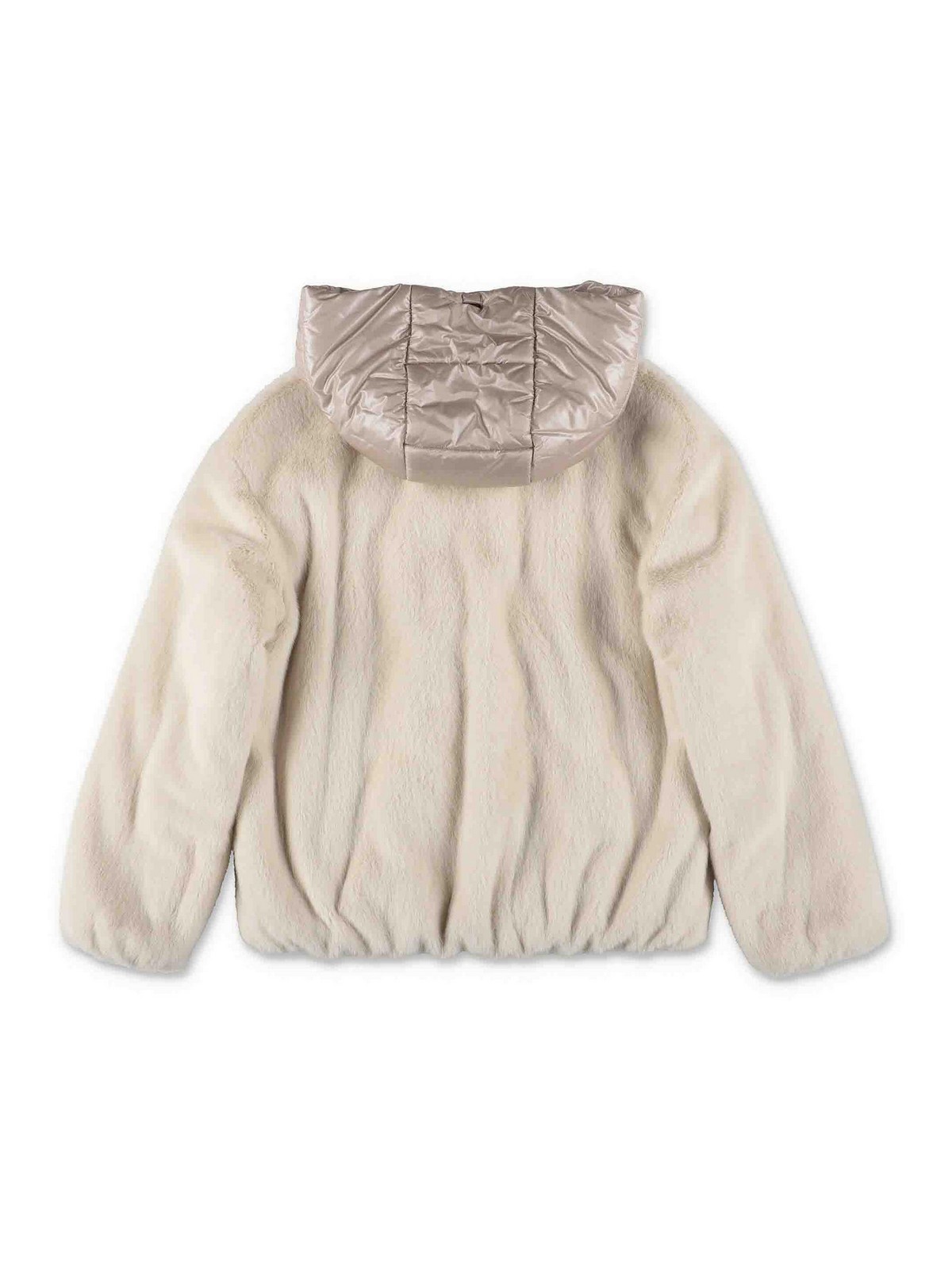 HERNO: casual jackets - Cream faux fur girl jacket with hood
